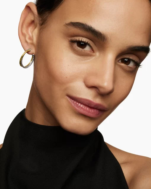 The Crossover Collection® explores the rhythmic weaving of line to create form and movement. Using a dynamic range of smooth and cabled cords, the individual strands are meticulously entwined. Sterling silver with 18-karat yellow goldEarrings, 26.5 x 5mm