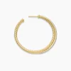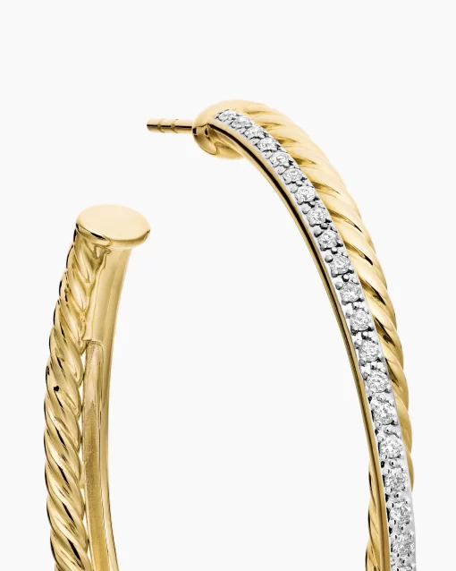 The Crossover Collection® explores the rhythmic weaving of line to create form and movement. Using a dynamic range of smooth and cabled cords, the individual strands are meticulously entwined. 18-karat yellow goldPavé diamonds, 0.46 total carat weightEarrings, 44 x 4.5mm