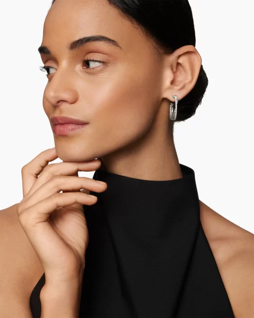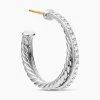 The Crossover Collection® explores the rhythmic weaving of line to create form and movement. Using a dynamic range of smooth and cabled cords, the individual strands are meticulously entwined. Sterling silverPavé diamonds, 0.31 total carat weightEarrings, 26.5 x 5mm