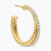 The Crossover Collection® explores the rhythmic weaving of line to create form and movement. Using a dynamic range of smooth and cabled cords, the individual strands are meticulously entwined. 18-karat yellow goldPavé diamonds, 0.27 total carat weightEarrings, 26.5 x 5mm