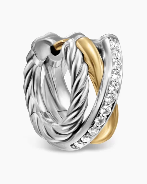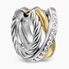 The DY Crossover® Collection explores the rhythmic weaving of line to create form and movement. Using a dynamic range of smooth and cabled cords, the individual strands are meticulously entwined.Sterling silver with 18-karat yellow goldPavé-set diamonds, 0.14 total carat weightEarrings, 13 x 7mm