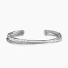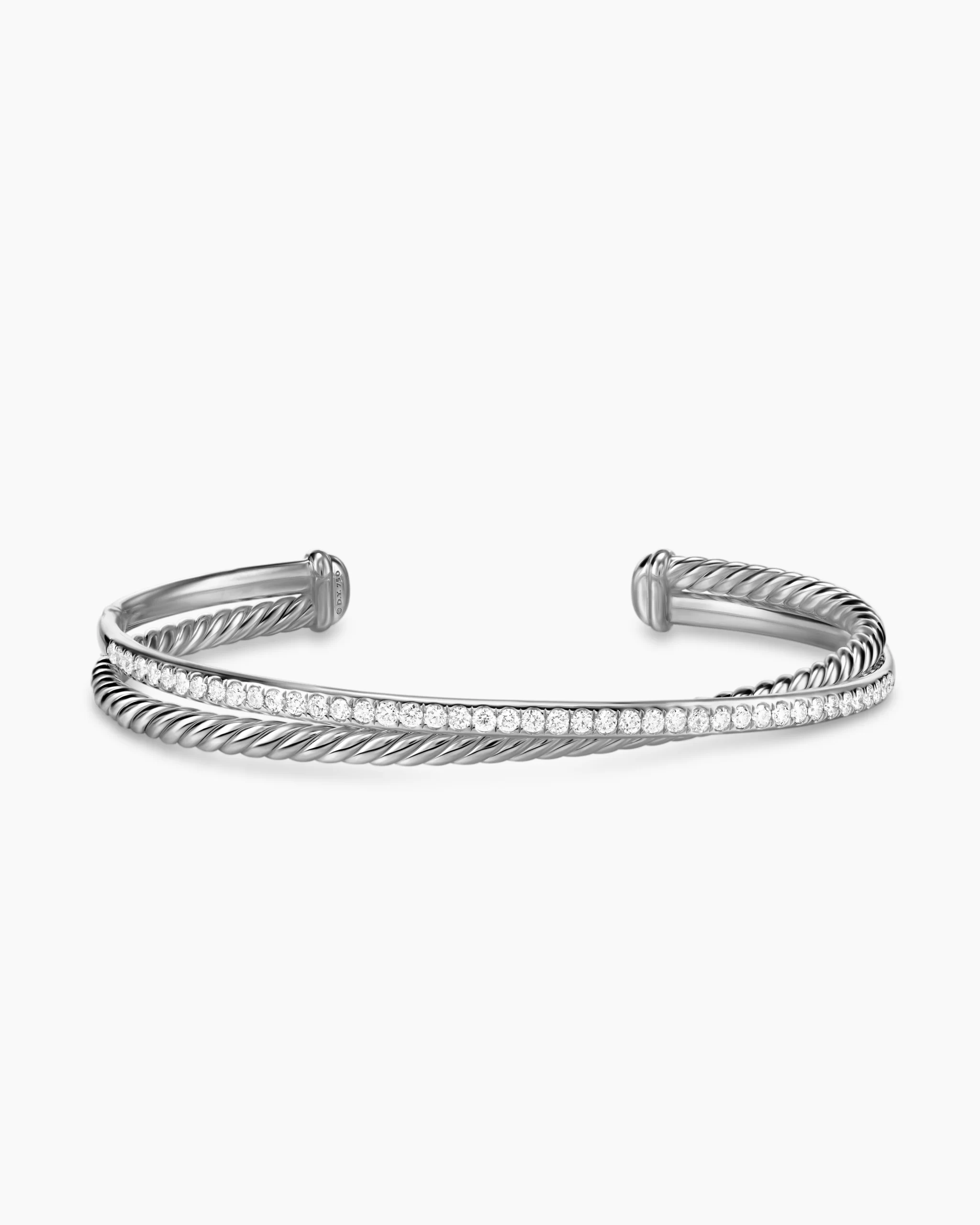 The DY Crossover® Collection explores the rhythmic weaving of line to create form and movement. Using a dynamic range of smooth and cabled cords, the individual strands are meticulously entwined.Sterling silverPavé-set diamonds, 0.54 total carat weightBracelet, 6mm