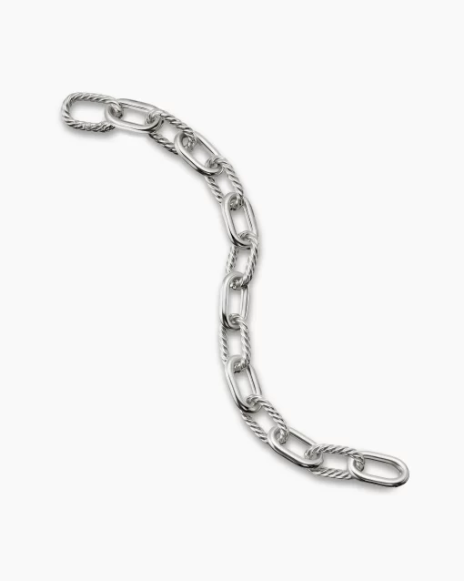 Named for the iconic Manhattan avenue, DY Madison® captures the bold spirit of New York City—unexpected moments and the promise of success. A striking juxtaposition of smooth and Cabled, pillow-shaped links fuses the brand’s signature design elements to create a unique rhythm. At once modern and timeless, these must-have chains are instant heirlooms.Sterling silverBracelet, 11mmPush clasp