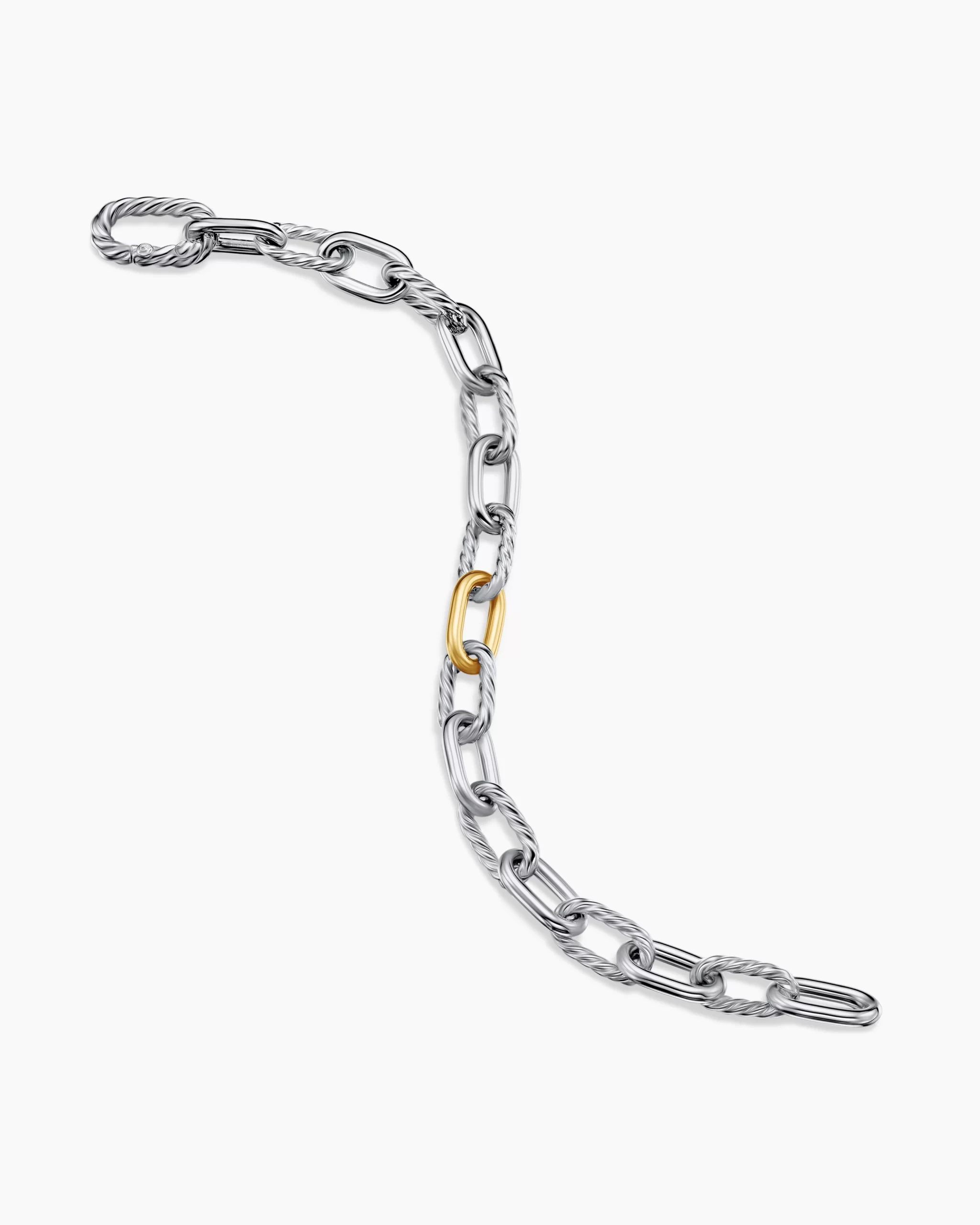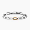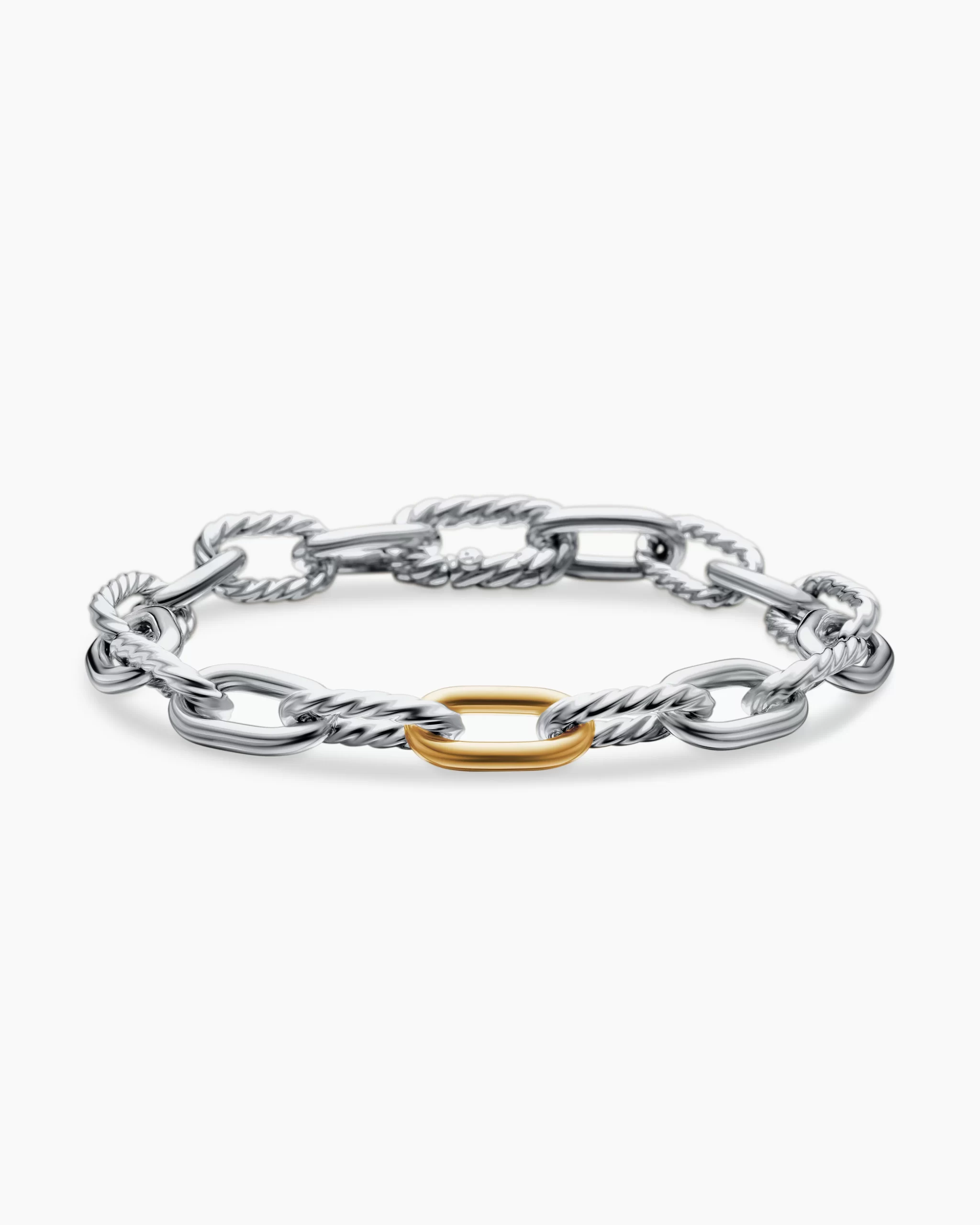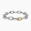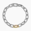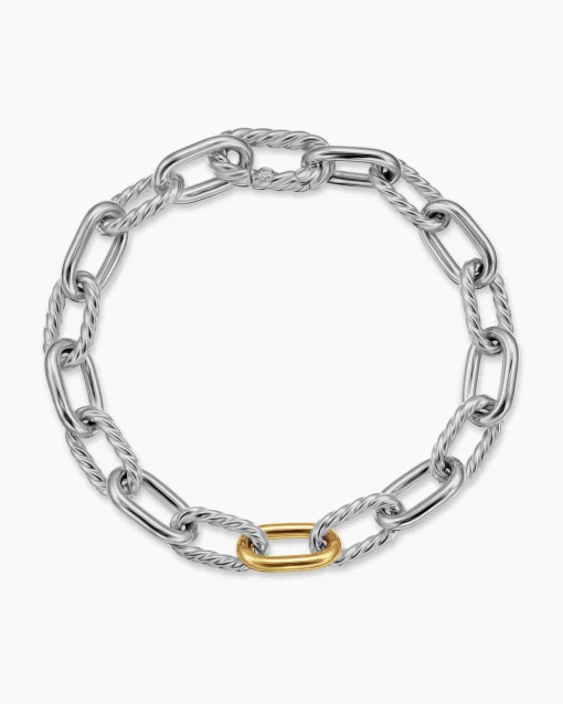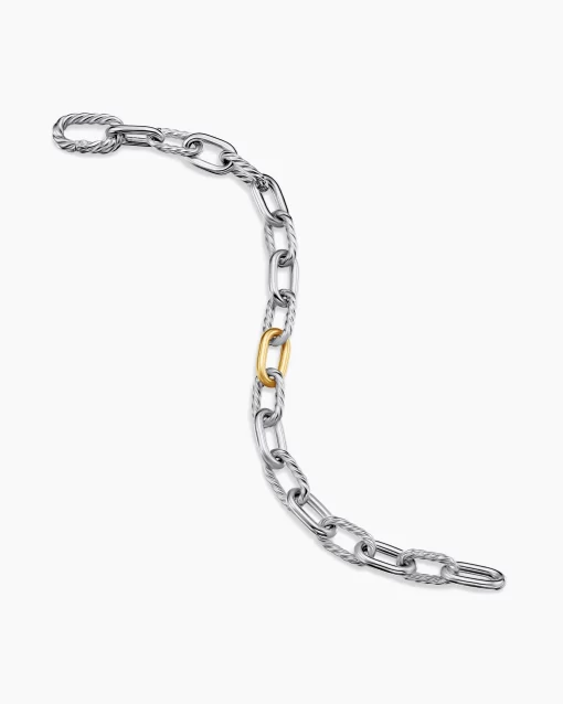 Named for the iconic Manhattan avenue, DY Madison® captures the bold spirit of New York City—unexpected moments and the promise of success. A striking juxtaposition of smooth and Cabled, pillow-shaped links fuses the brand’s signature design elements to create a unique rhythm. At once modern and timeless, these must-have chains are instant heirlooms.Sterling silver with bonded 18-karat bonded yellow goldBracelet, 8.5mmPush clasp
