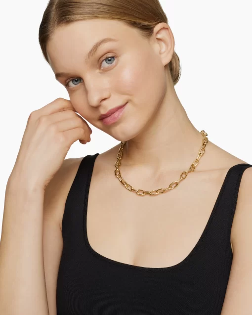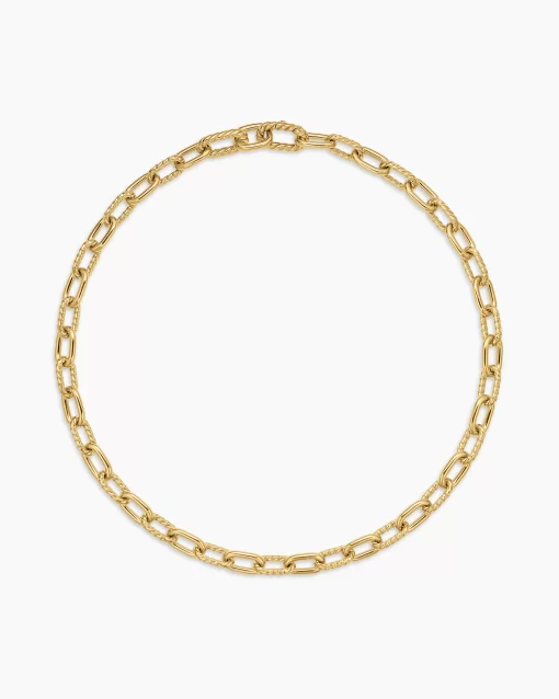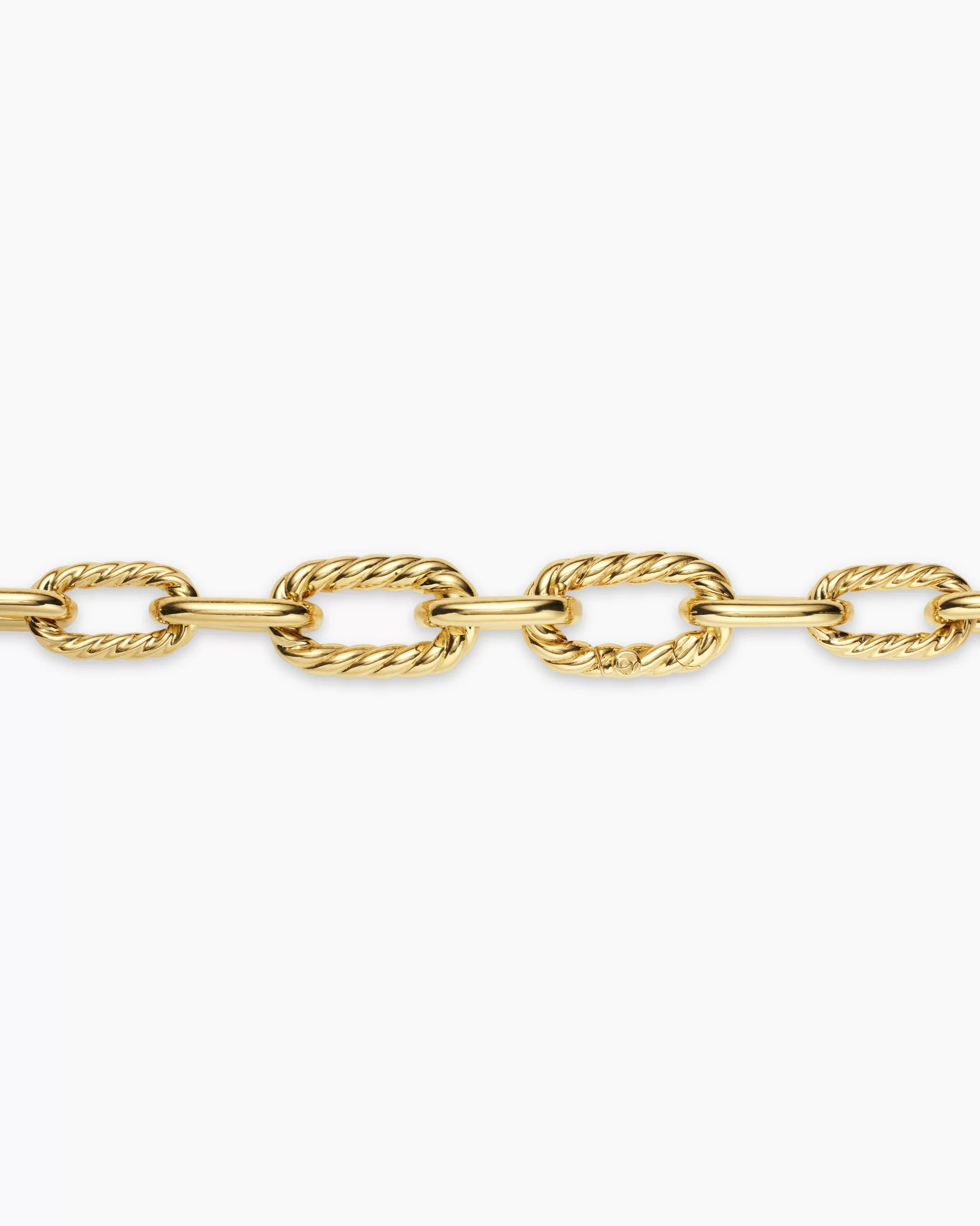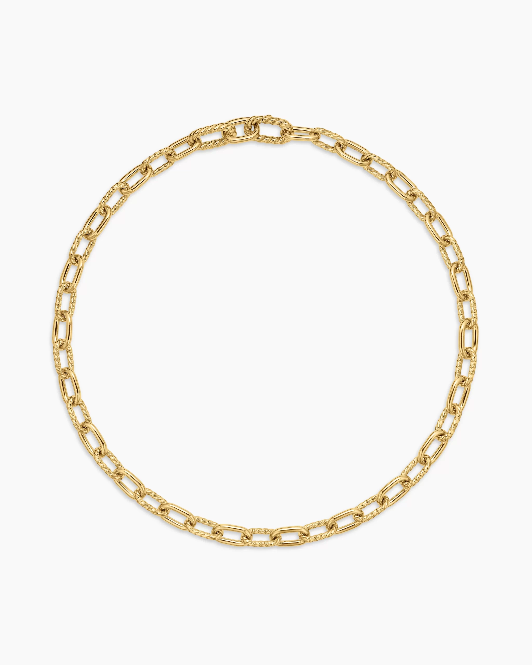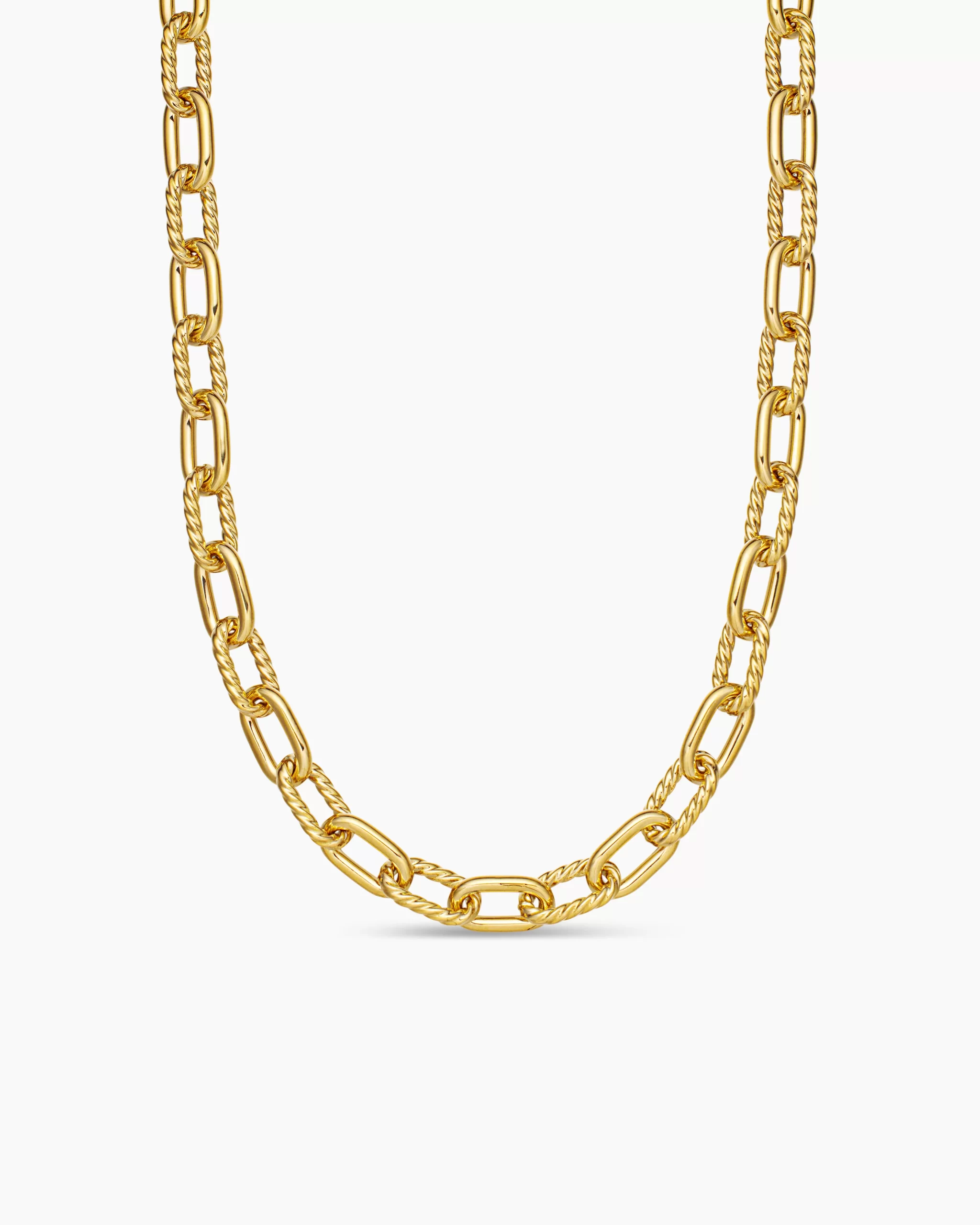 Named for the iconic Manhattan avenue, DY Madison® captures the bold spirit of New York City—unexpected moments and the promise of success. A striking juxtaposition of smooth and Cabled, pillow-shaped links fuses the brand’s signature design elements to create a unique rhythm. At once modern and timeless, these must-have chains are instant heirlooms.18-karat yellow goldNecklace, 8.5mmPush clasp