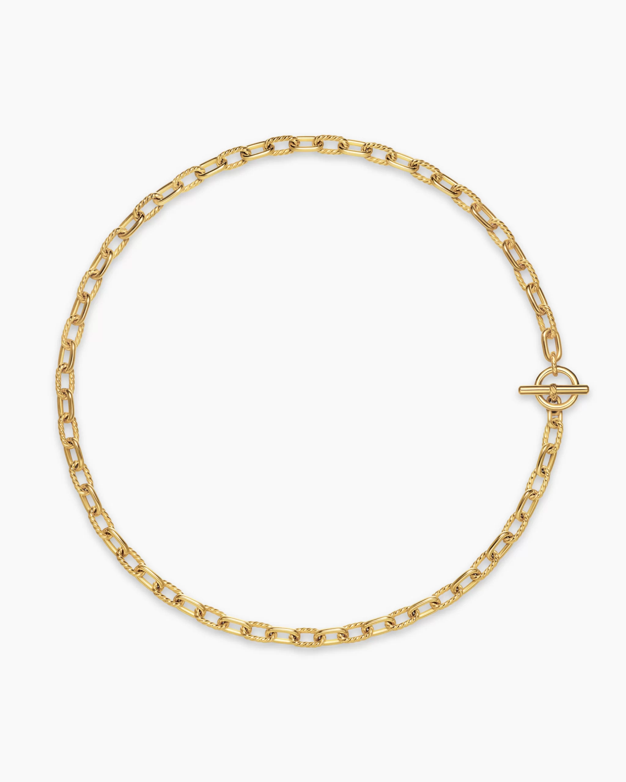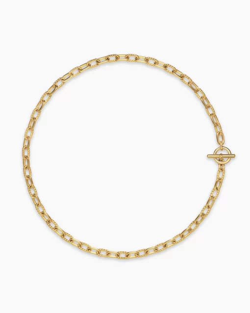 Named for the iconic Manhattan avenue, DY Madison® captures the bold spirit of New York City—unexpected moments and the promise of success. A striking juxtaposition of smooth and Cabled, pillow-shaped links fuses the brand’s signature design elements to create a unique rhythm. At once modern and timeless, these must-have chains are instant heirlooms.18-karat yellow goldNecklace, 5.5mmToggle clasp