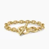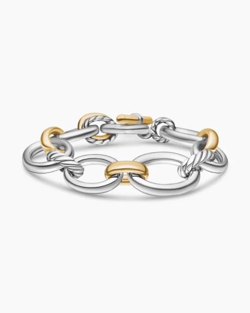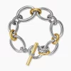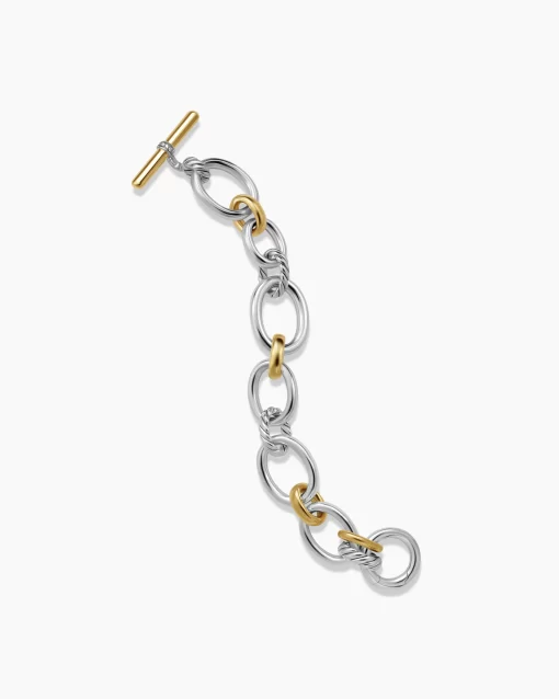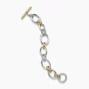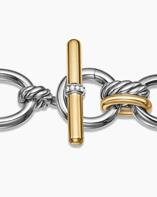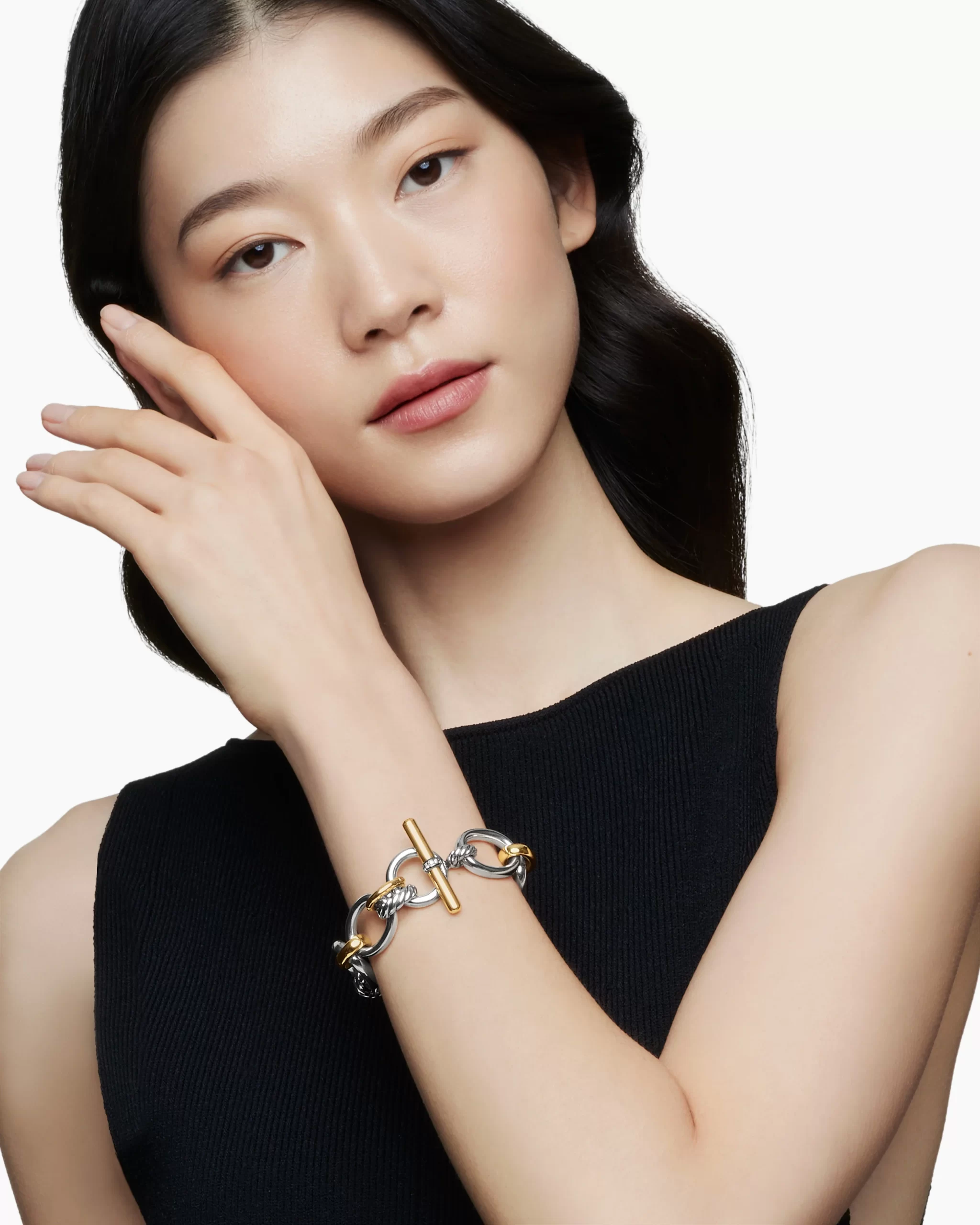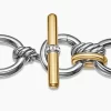 Inspired by SoHo’s historic art scene and galleries, DY Mercer® captures bold creativity and the spirit of New York. The collection channels a youthful energy with exaggerated oval links, unique toggle closures, and stacked silhouettes. Crafted in 18K gold and sterling silver with antique cushion-cut gems, these sculptural designs combine elevated artistry with an effortlessly modern feel.Sterling silver with 18-karat bonded yellow goldPavé-set diamonds, 0.06 total carat weightBracelet, 20-25mmPush clasp