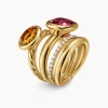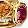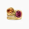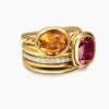 Inspired by SoHo’s historic art scene and galleries, DY Mercer® captures bold creativity and the spirit of New York. The collection channels a youthful energy with exaggerated oval links, unique toggle closures, and stacked silhouettes. Crafted in 18K gold and sterling silver with antique cushion-cut gems, these sculptural designs combine elevated artistry with an effortlessly modern feel.18-karat yellow goldMadeira citrine, 2.46 total carat weightPink tourmaline, 3.30 total carat weightMadeira citrine stone, 9.5 x 8mmPink tourmaline stone, 9.5 x 8.5mmPavé-set diamonds, 0.01 total carat weightRing, 17.7mm