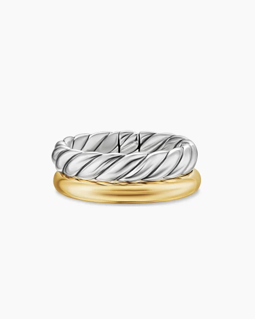 Inspired by SoHo’s historic art scene and galleries, DY Mercer® captures bold creativity and the spirit of New York. The collection channels a youthful energy with exaggerated oval links, unique toggle closures, and stacked silhouettes. Crafted in 18K gold and sterling silver with antique cushion-cut gems, these sculptural designs combine elevated artistry with an effortlessly modern feel.Sterling silver and 18-karat yellow goldRing, 8mm