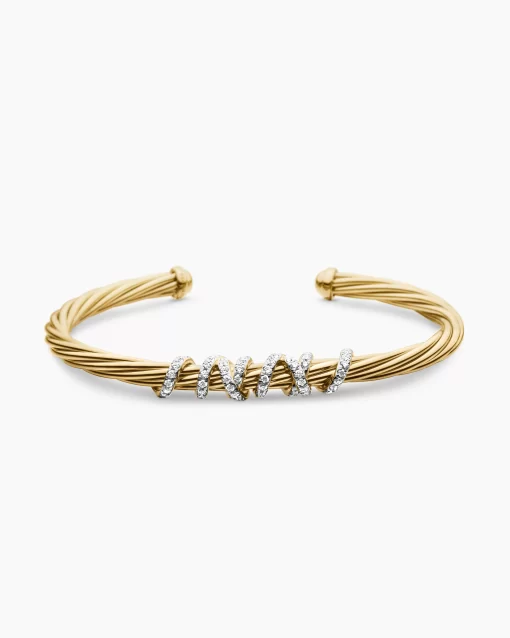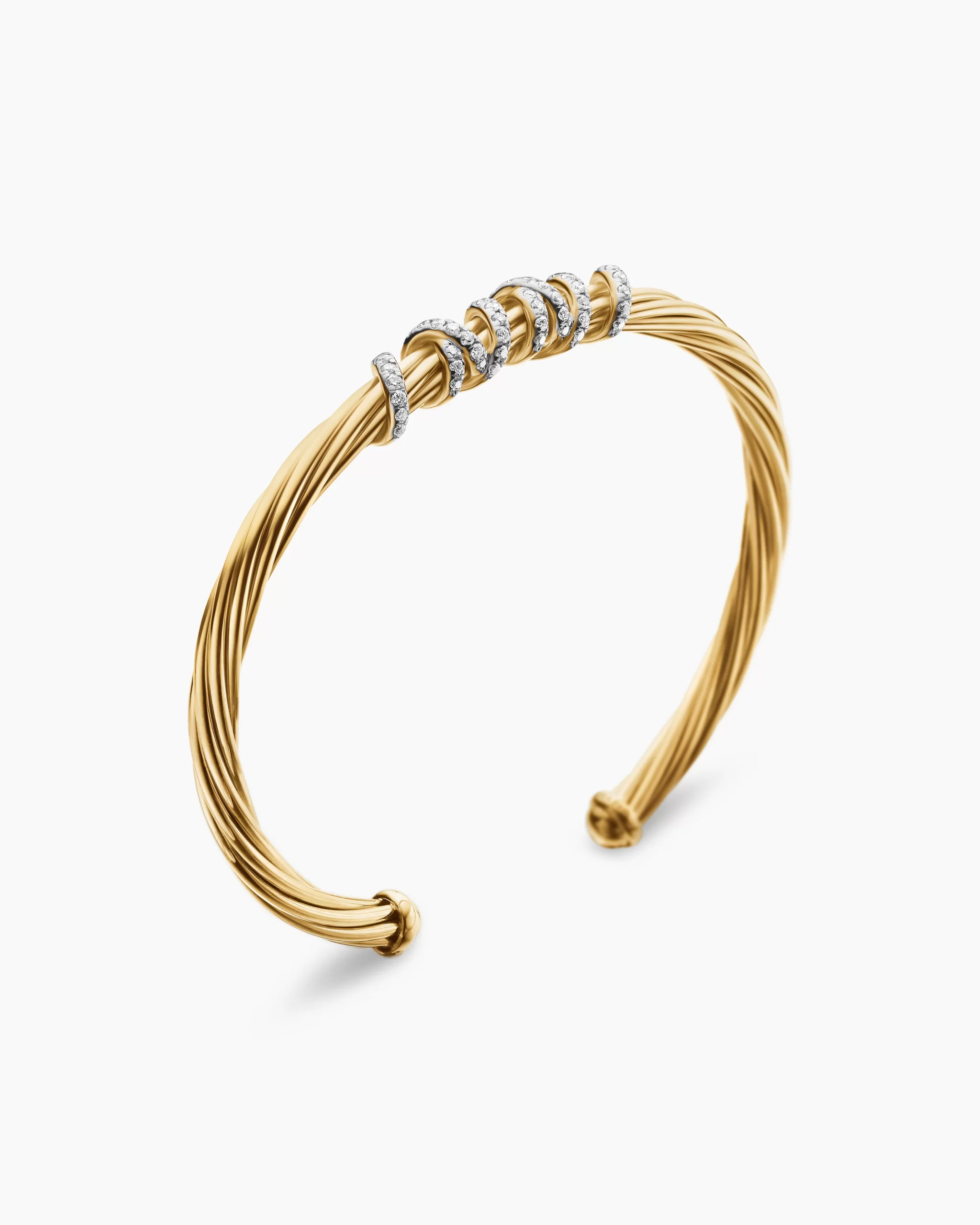 In the Helena Collection, David Yurman returns to the longer, leaner twist of his first handmade Cable bracelet, wrapping the iconic form with 18K yellow gold threads accented with hand-set pavé diamonds. 18-karat yellow goldPavé diamonds, 0.48 total carat weightBracelet, 4mm