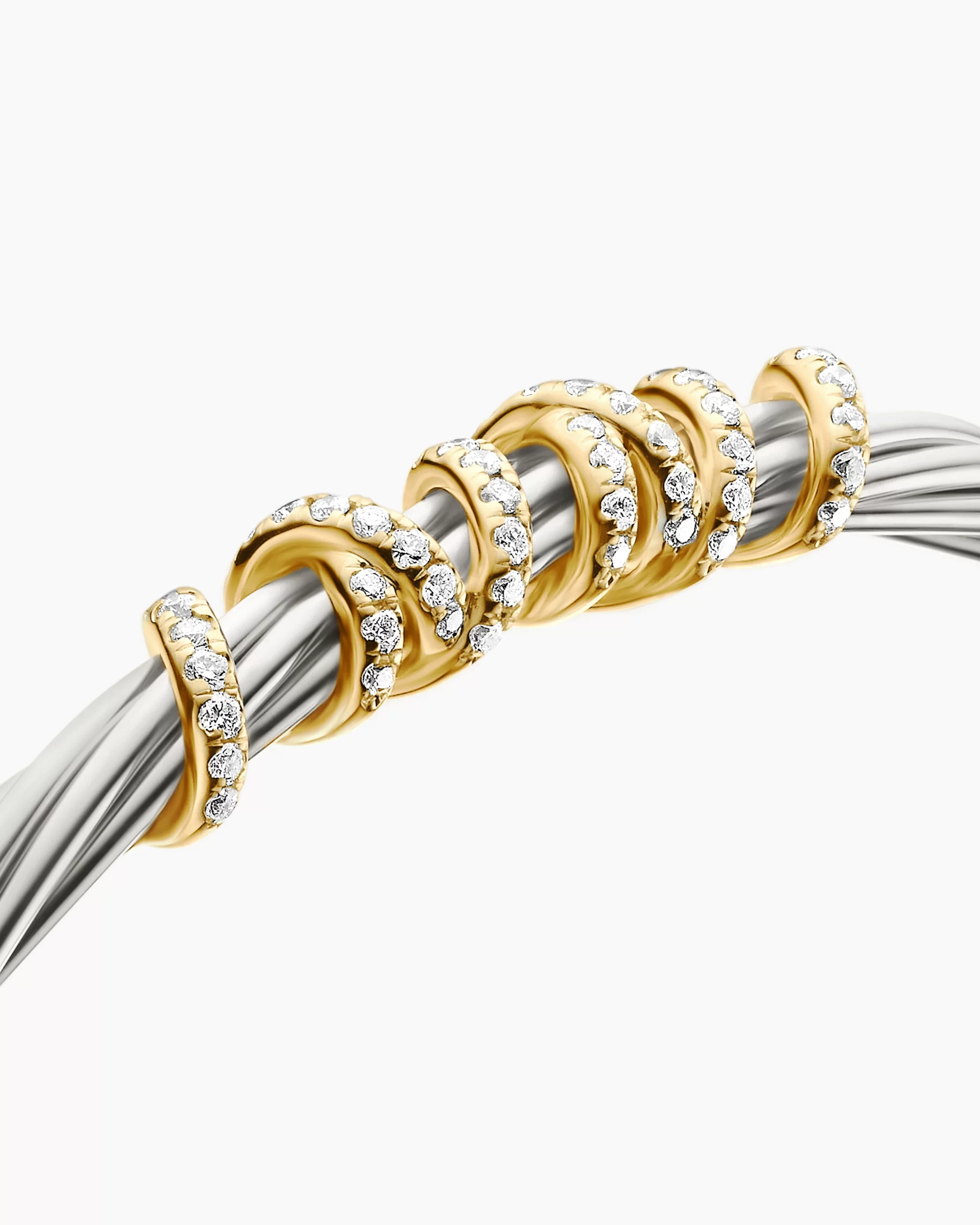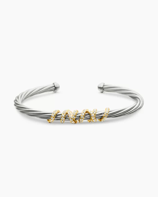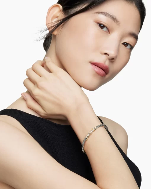 In the Helena Collection, David Yurman returns to the longer, leaner twist of his first handmade Cable bracelet, wrapping the iconic form with 18K yellow gold threads accented with hand-set pavé diamonds. Sterling silver with 18-karat yellow goldPavé diamonds, 0.47 total carat weightBracelet, 4mm