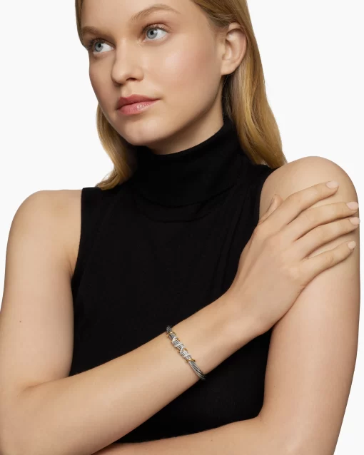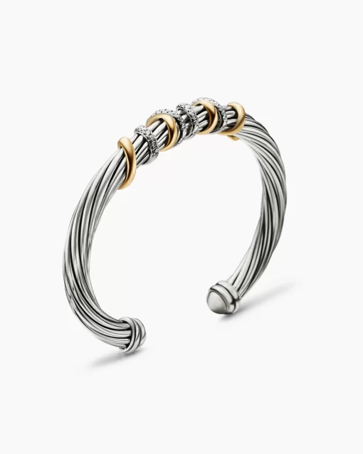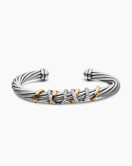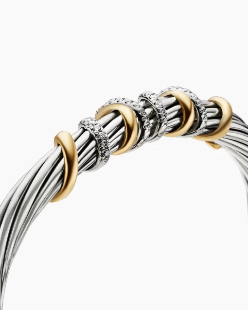 In the Helena Collection, David Yurman returns to the longer, leaner twist of his first handmade Cable bracelet, wrapping the iconic form with 18K yellow gold threads accented with hand-set pavé diamonds. Sterling silver with 18-karat yellow goldPavé diamonds, 0.34 total carat weightBracelet, 6mm
