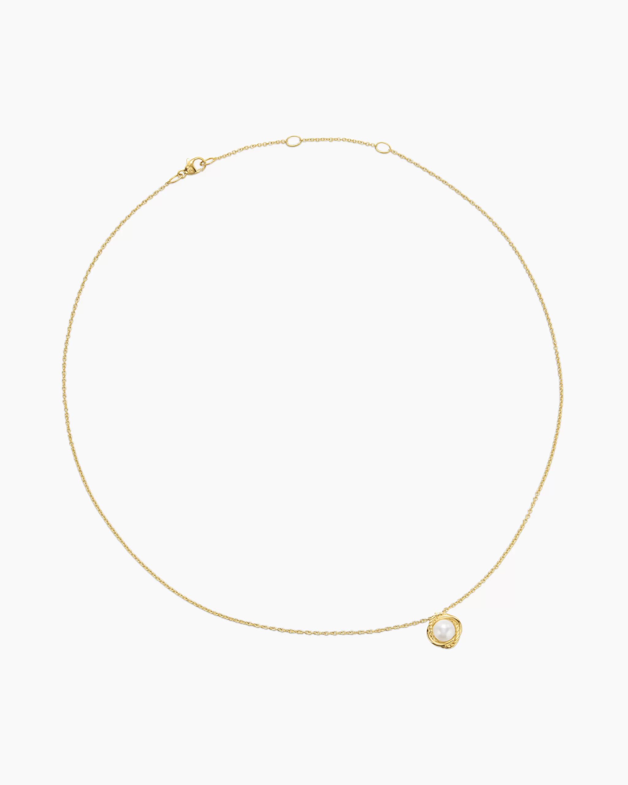 The Infinity Collection is a fresh take on the ancient symbol with a pair of elliptical smooth and Cabled links interlaced in perfect harmony. 18-karat yellow goldCultured freshwater pearl, 6-6.5mmAdjustable length, 16-18inPendant, 10mmChain, 1.1mmLobster clasp