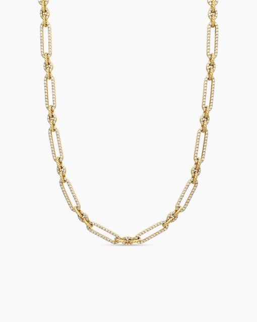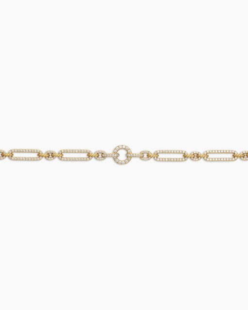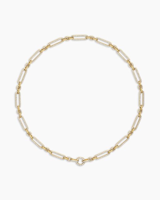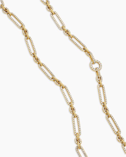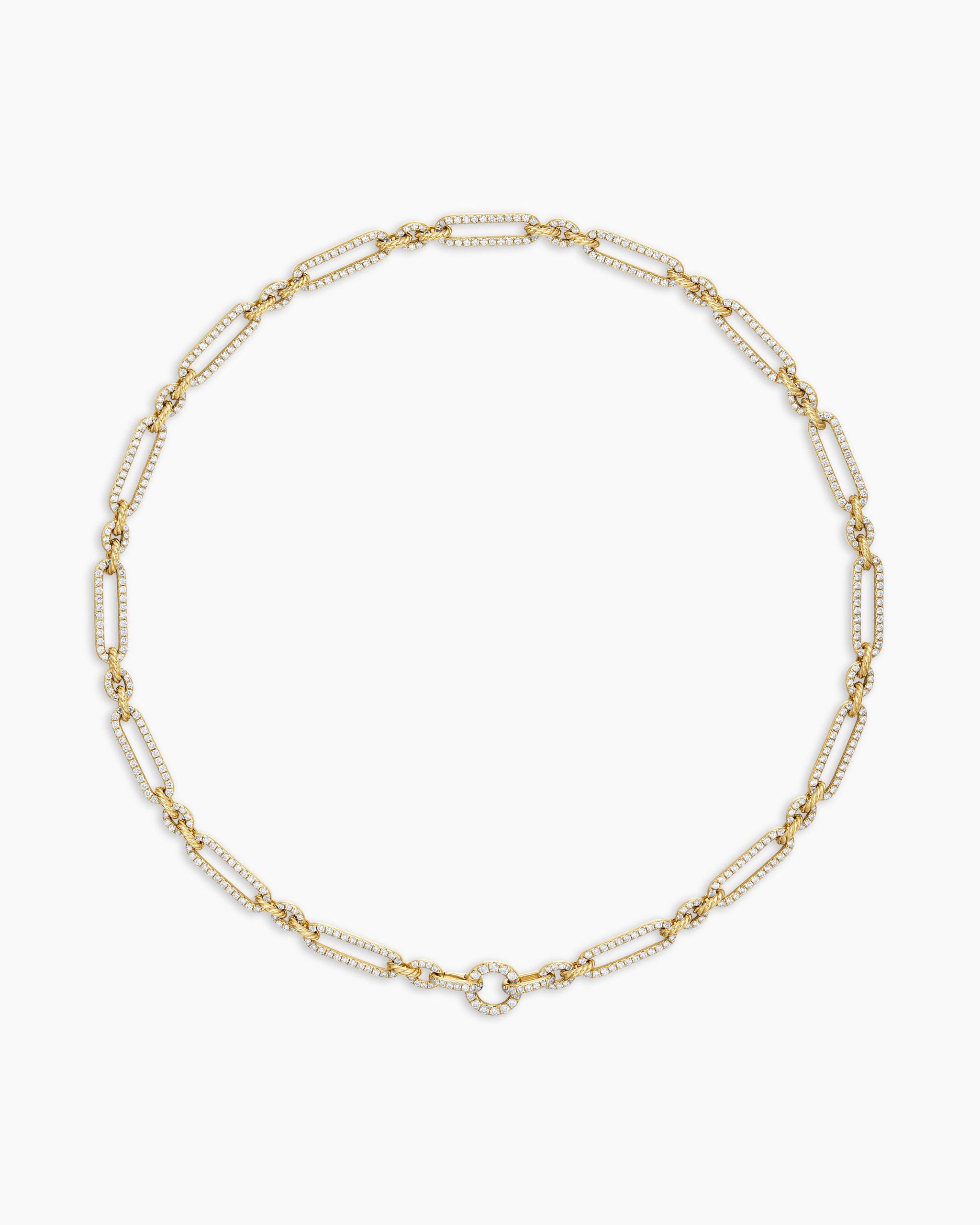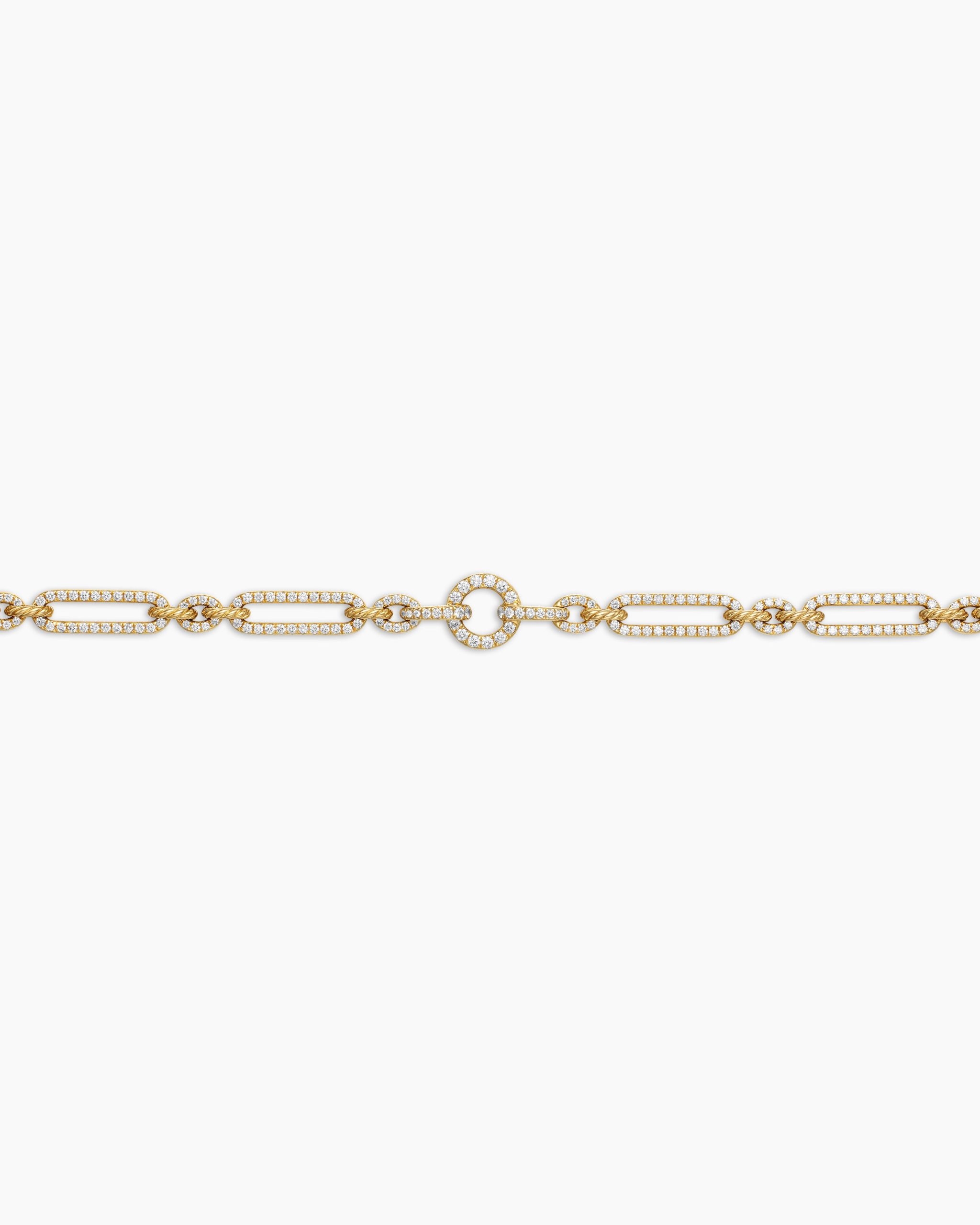 This Lexington design is inspired by the sleek sensibility of ‘30s Manhattan architecture, with clean lines and the juxtaposition of smooth and Cabled metal. 18-karat yellow goldPavé diamonds, 5.69 total carat weightChain, 6.5mmPush clasp