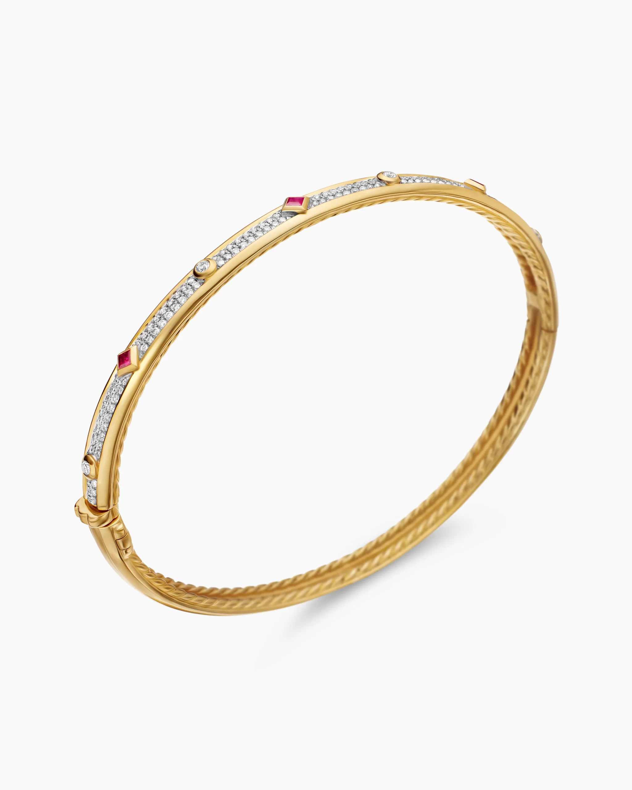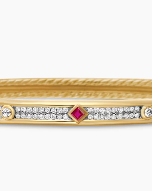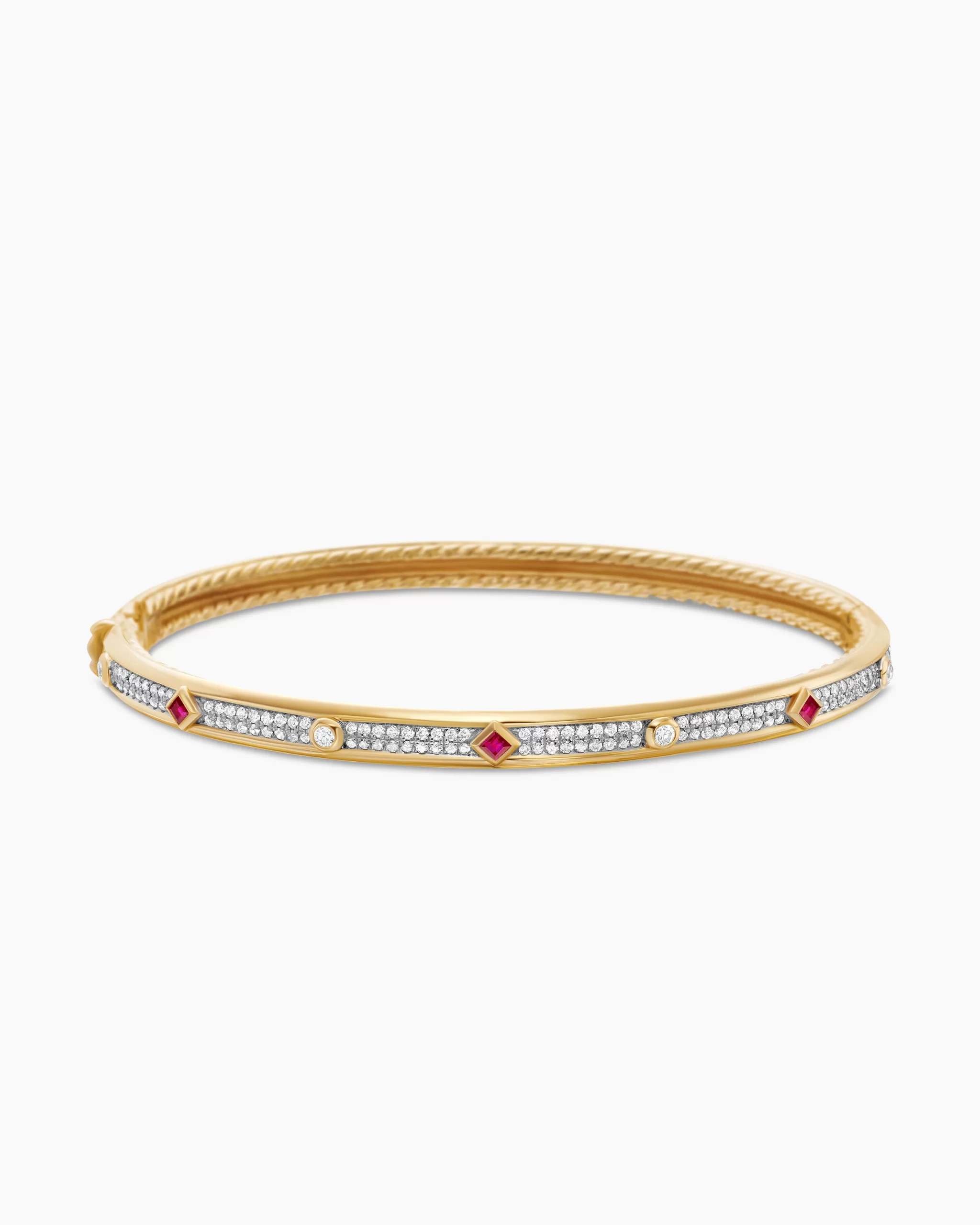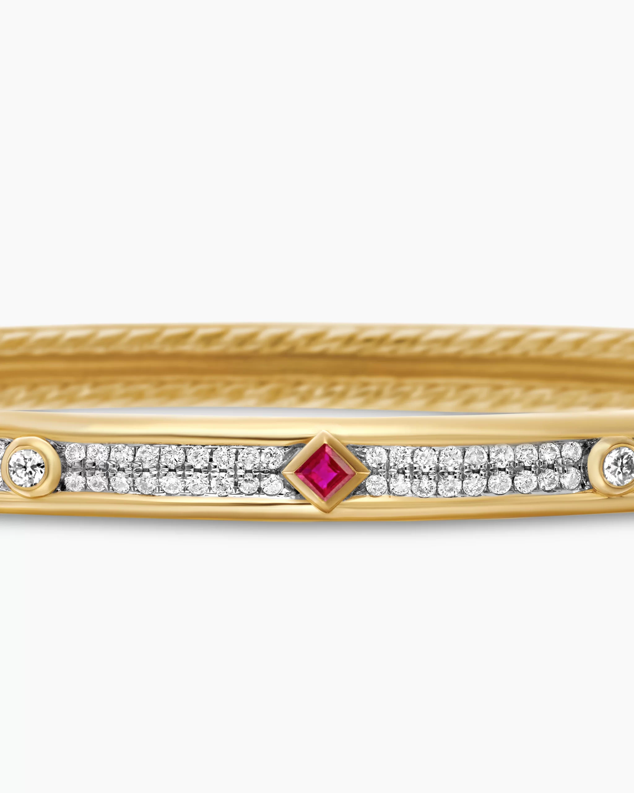 DY Renaissance® merges sculptural form with the brilliant jewel tones found in classical painting to produce a collection that is quintessential David Yurman. 18-karat yellow goldRubies, 0.10 total carat weightPavé diamonds, 0.53 total carat weightBracelet, 4.5mmBox clasp