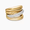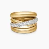 The DY Crossover® Collection explores the rhythmic weaving of line to create form and movement. Using a dynamic range of smooth and cabled cords, the individual strands are meticulously entwined. 18-karat yellow goldPavé diamonds, 0.62 total carat weightRing, 17.7mmThis item can be resized. Please contact customer care for more information.