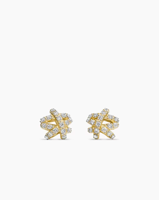The Crossover Collection® explores the rhythmic weaving of line to create form and movement. Using a dynamic range of smooth and cabled cords, the individual strands are meticulously entwined. 18-karat yellow goldPavé diamonds, 0.31 total carat weightEarrings, 9mm