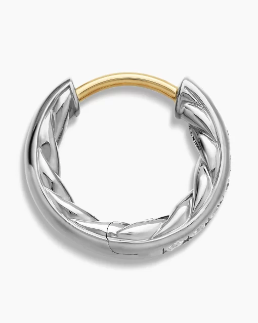 In Sculpted Cable, David Yurman transforms his signature design motif into a carved form. The effect is an entrancing wavelike pattern that retains the dimensional look of Cable’s original helix. Sterling silverPavé-set diamonds, 0.21 total carat weightEarrings, 13 x 2.4mm