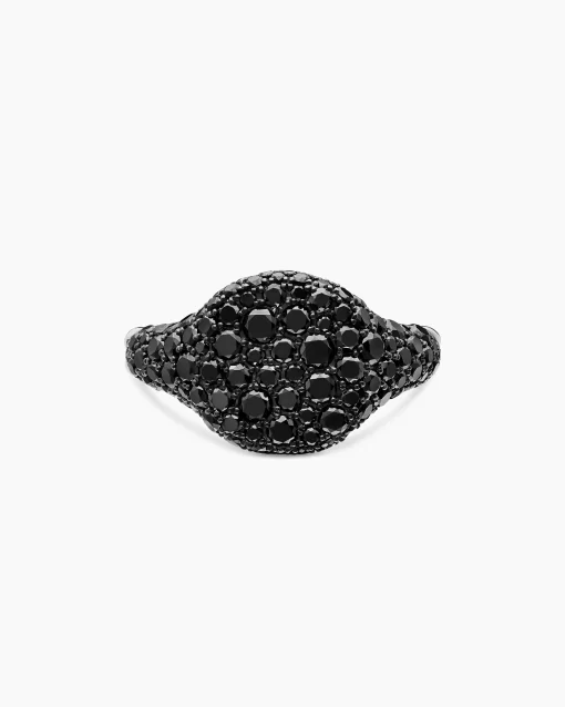 Inspired by the traditional signet ring, the Pinky Ring Collection brings a modern spirit to a classic form with elegant contours. 18-karat white goldPavé black diamonds, 1.18 total carat weightRing, 10mm