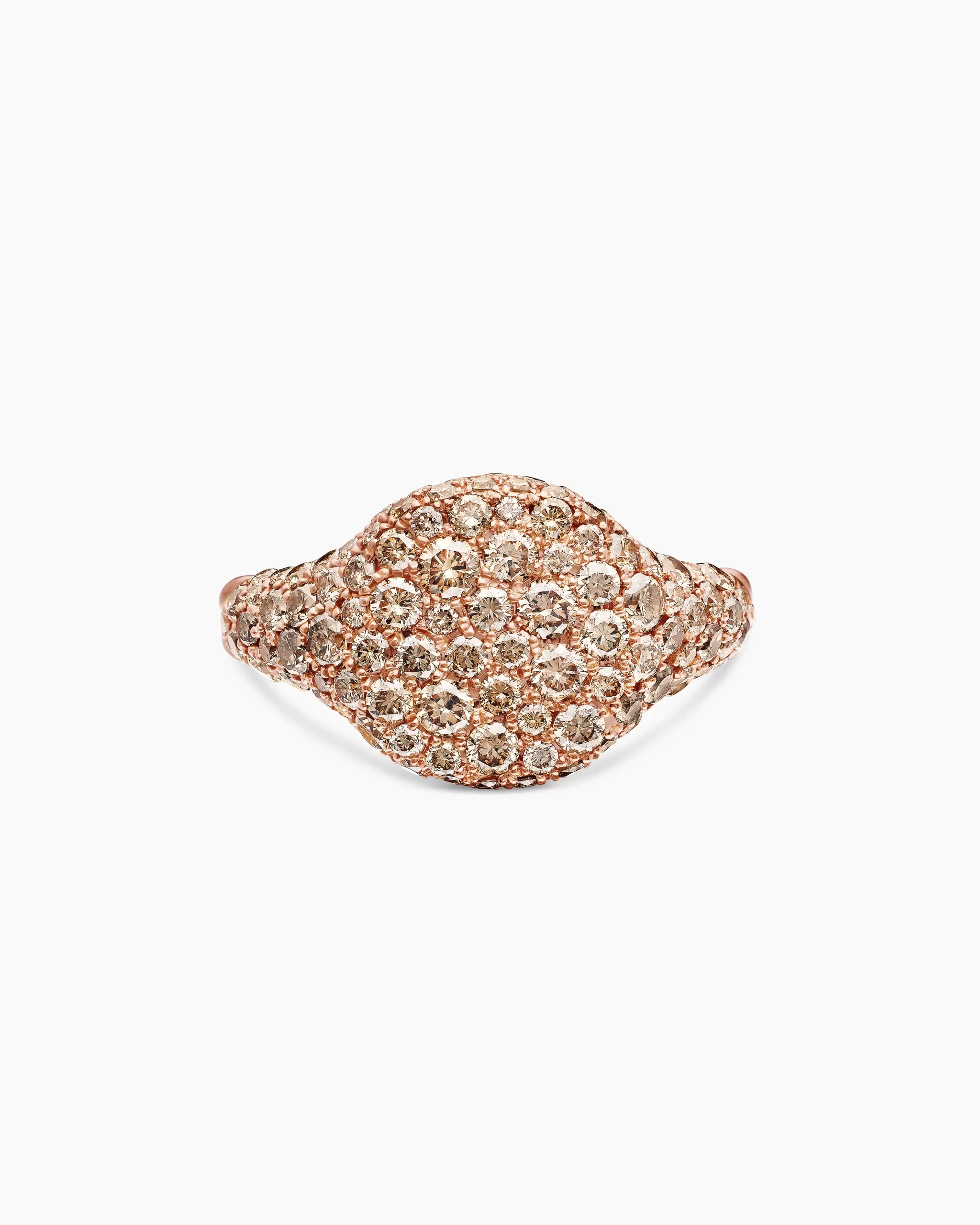 Inspired by the traditional signet ring, the Pinky Ring Collection brings a modern spirit to a classic form with elegant contours. 18-karat rose goldPavé cognac diamonds, 1.16 total carat weightRing, 10mm