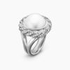 Gifts from nature, the lustrous beauty of pearls has always inspired our timeless designs. Sterling silverSouth sea white pearl, 15.7mmPavé-set diamonds, 0.58 total carat weightRing, 21mmThis item can be resized. Please contact customer care for more information.This item can be engraved. Please contact customer care for more information.