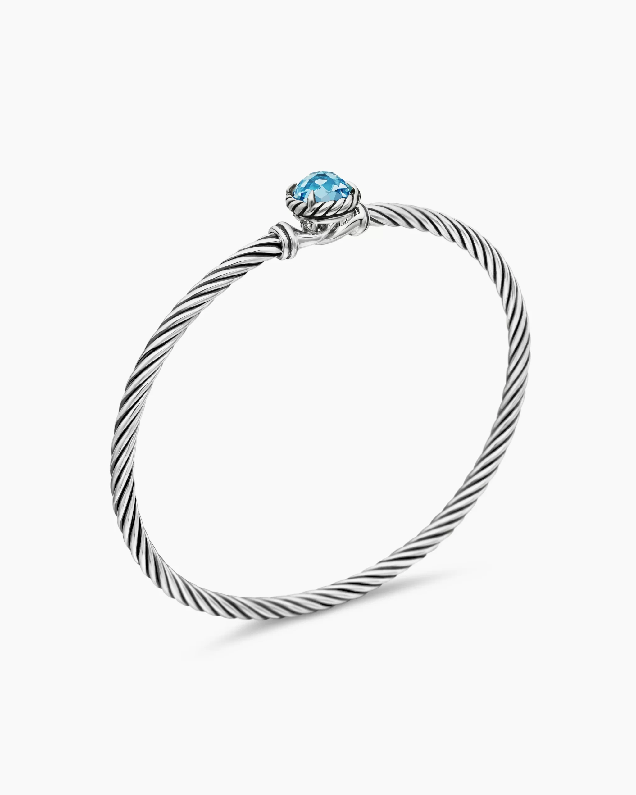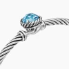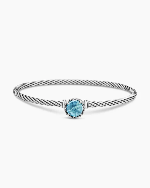 The Châtelaine® Collection is a perfect fusion of David and Sybil Yurman’s combined art—the marriage of a sculptor and a painter—form and color. Sterling silverBlue topaz, 2.57 total carat weightStone, 8mmBracelet, 3mmHook clasp