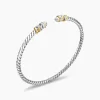 In the Helena Collection, David Yurman returns to the longer, leaner twist of his first handmade Cable bracelet, wrapping the iconic form with 18K yellow gold threads accented with hand-set pavé diamonds. Sterling silver with 18-karat yellow goldPavé diamonds, 0.30 total carat weightBracelet, 3mm