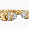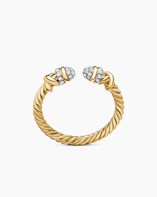 In the Helena Collection, David Yurman returns to the longer, leaner twist of his first handmade Cable bracelet, wrapping the iconic form with 18K yellow gold threads accented with hand-set pavé diamonds. 18-karat yellow goldPavé diamonds, 0.16 total carat weightRing, 2.5mmCablespira® is a patented DY construction that is highly flexible and exceptionally comfortable to wear.
