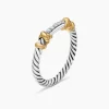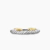 In the Helena Collection, David Yurman returns to the longer, leaner twist of his first handmade Cable bracelet, wrapping the iconic form with 18K yellow gold threads accented with hand-set pavé diamonds. Sterling silver with 18-karat yellow goldPavé diamonds, 0.05 total carat weightRing, 4mm