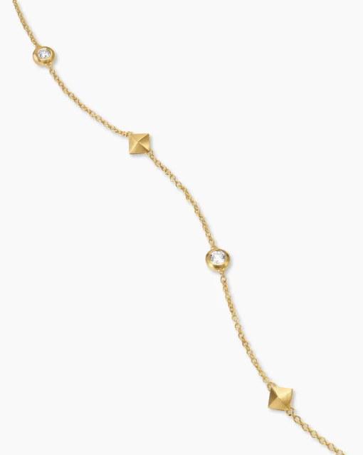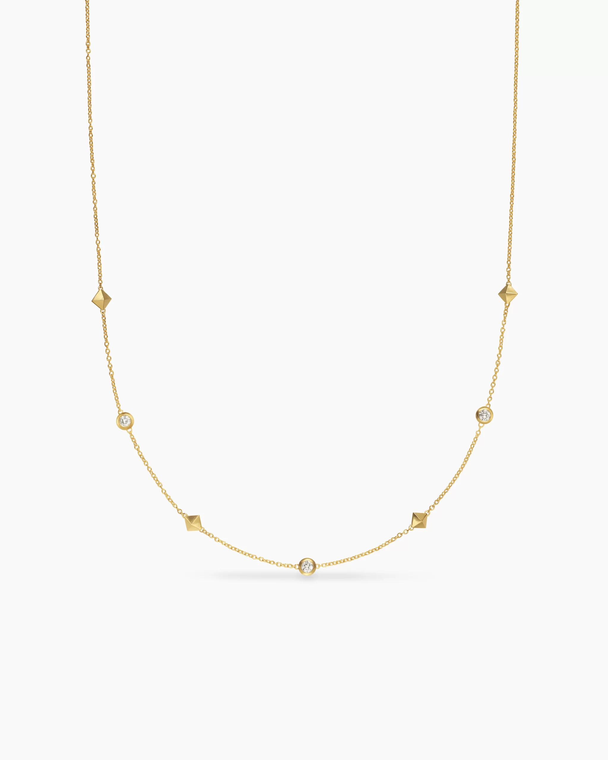 This design references the pyramid—an enduring form that connects us to our ancient roots in art, architecture and design.18-karat yellow goldBezel-set diamonds, 0.17 total carat weightAdjustable length, 14-16inNecklace, 4.6mmChain, 1.1mmLobster clasp