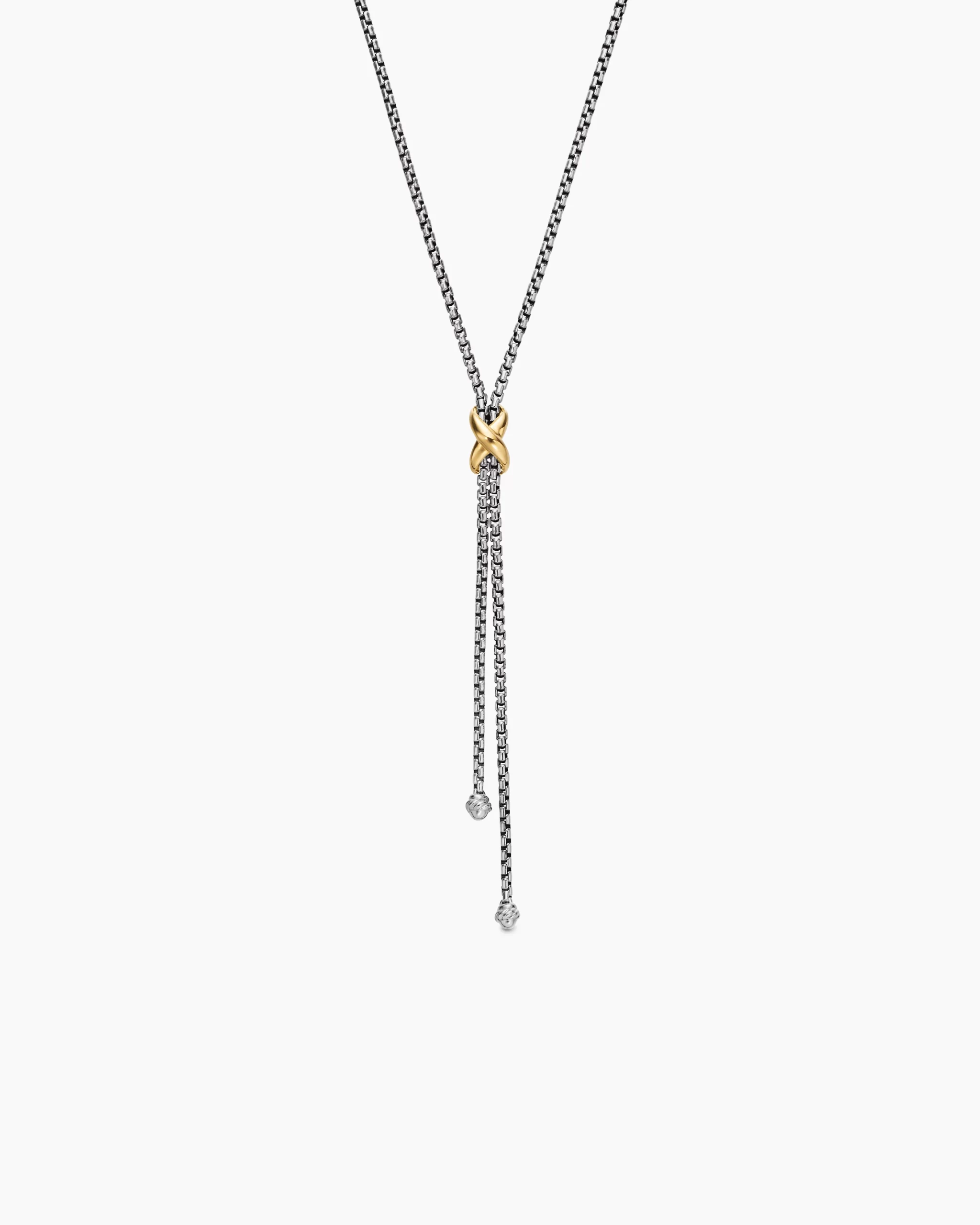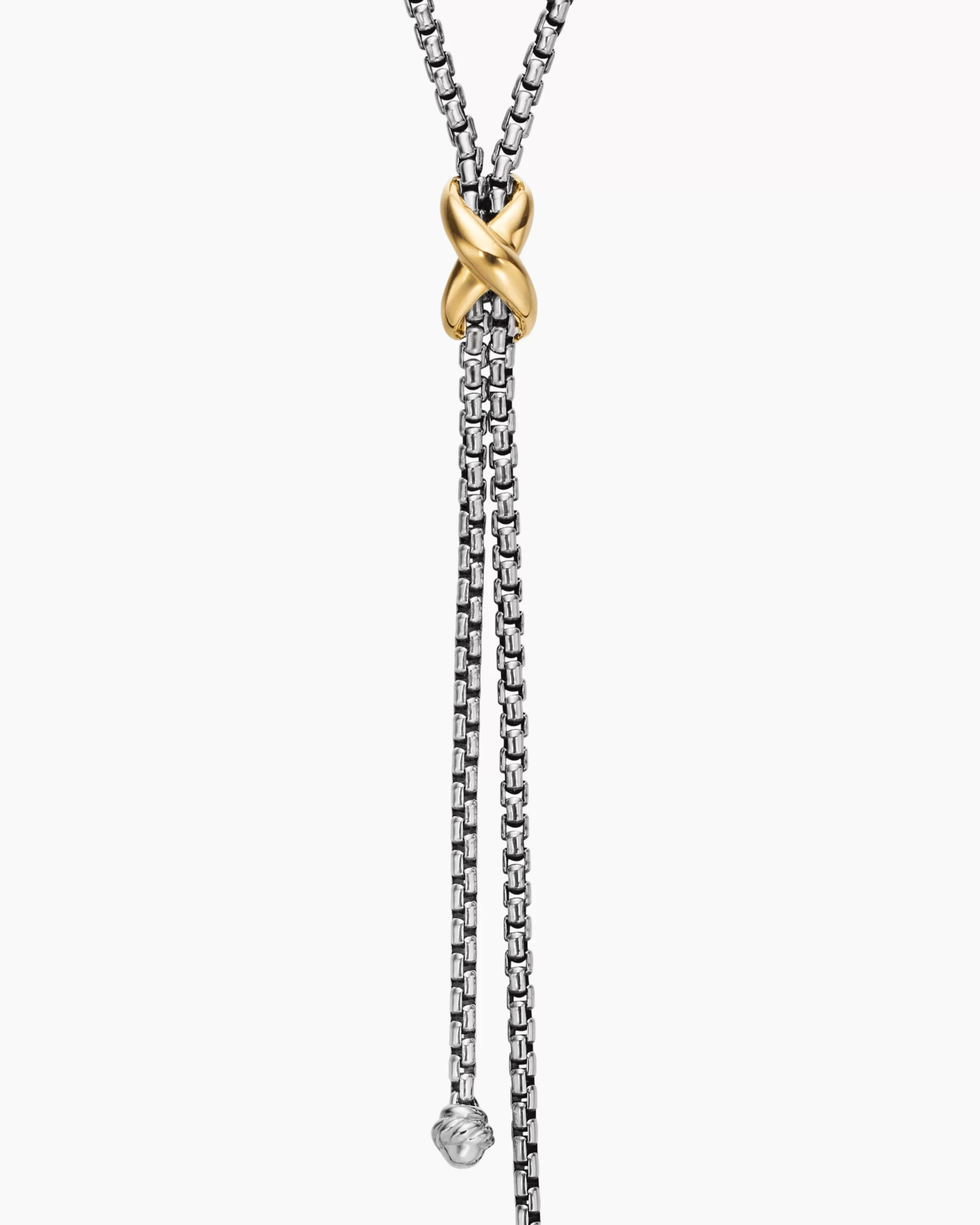 One of David Yurman’s most iconic designs, the X Collection was inspired by his wife Sybil’s painting of the ancient mark. Classic yet contemporary, the collection epitomizes his approach to design. Sterling silver with 18-karat yellow goldAdjustable length, 15.5-17.5inDrop length, 1.63inChain, 1.5mmLobster clasp