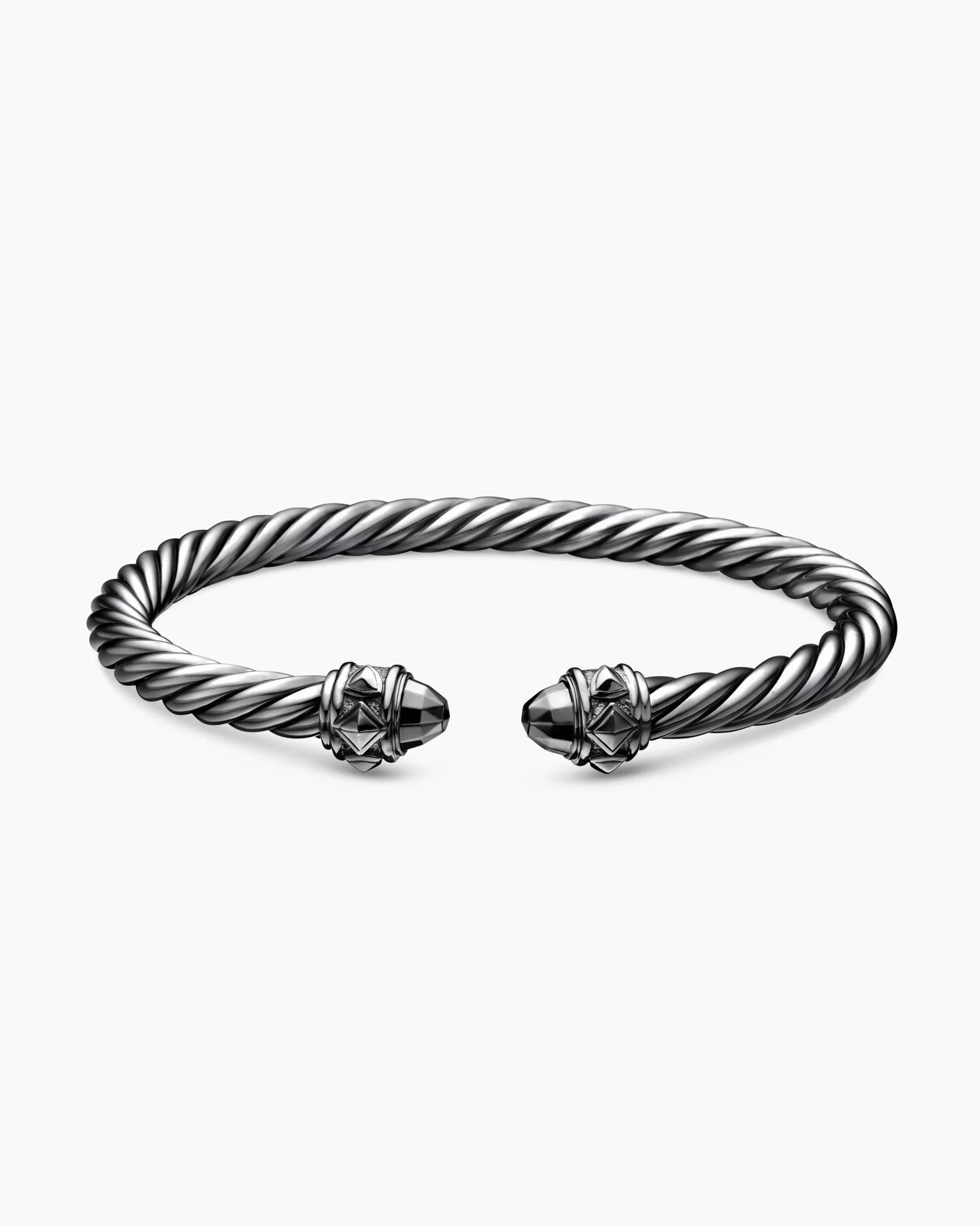 David Yurman’s artistic signature, Cable began as a bracelet that he hand-twisted from 50 feet of wire. For the past 30 years, he has evolved the twisted helix into a myriad of designs.nn nnntBlackened sterling silverntBracelet, 5mmn