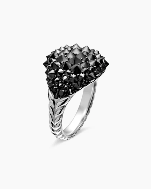 David Yurman contemporizes the classic signet ring with diamonds that are reverse set for an unexpected edge. 18-karat white goldPavé black diamonds, 2.38 total carat weightRing, 14mmThis item can be engraved. Please contact customer care for more information.