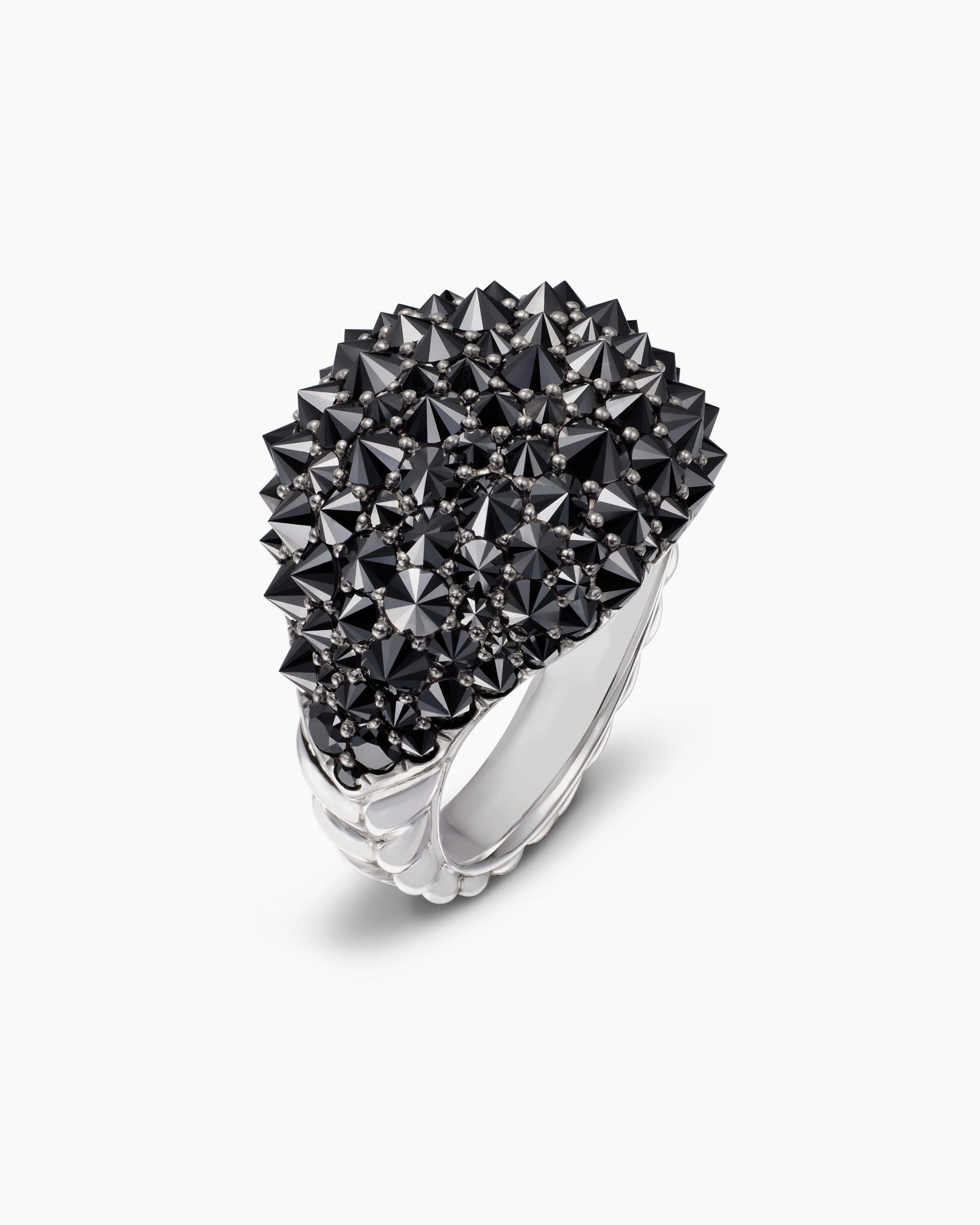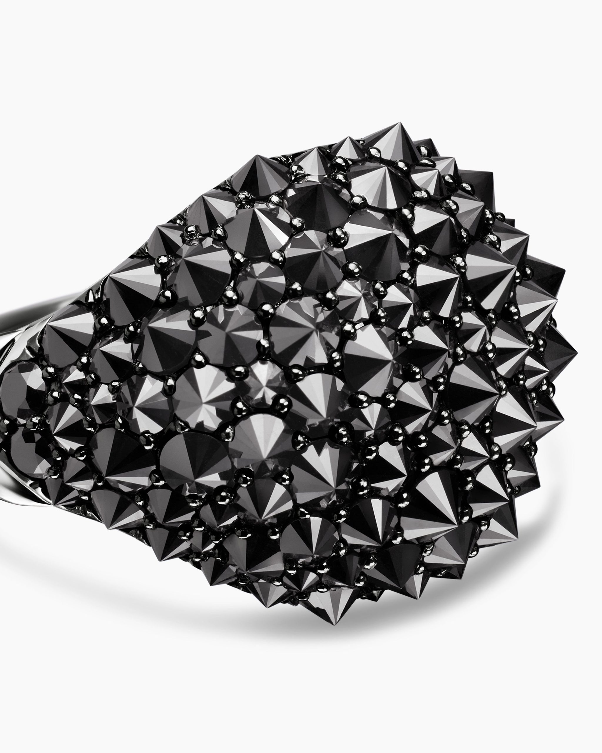 David Yurman contemporizes the classic signet ring with diamonds that are reverse set for an unexpected edge. 18-karat white goldPavé black diamonds, 5.38 total carat weightRing, 17.5mmThis item can be engraved. Please contact customer care for more information.