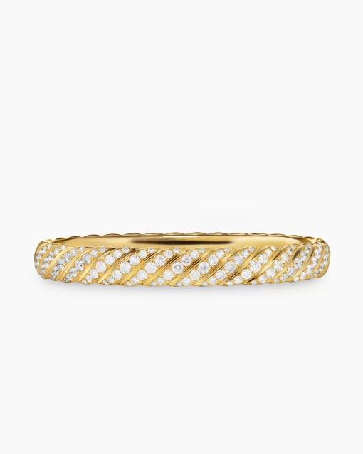 Inspired by his love of architecture and bas-relief sculpture, Evan Yurman designed this modern form by deconstructing Cable—the house’s signature motif—to its essence. Each design is a wearable work of art; precious metals are meticulously carved with exquisite wavelike patterns that dramatically catch the light. Elegant curves highlight the sensuality of the body, with pavé-set diamonds for a statement of added brilliance.18-karat yellow goldPavé-set diamonds, total carat weight ranges from 2.65 – 3.06 (dependent on size)Bracelet, 8mmPush clasp