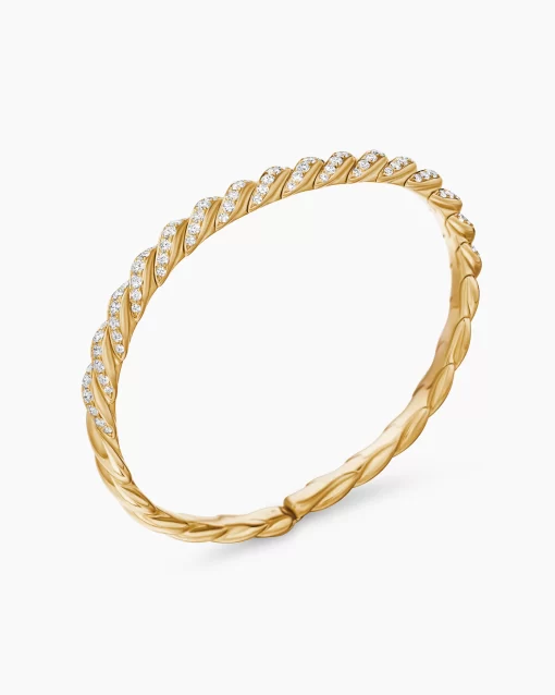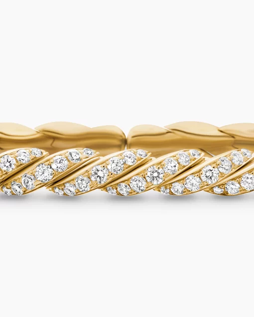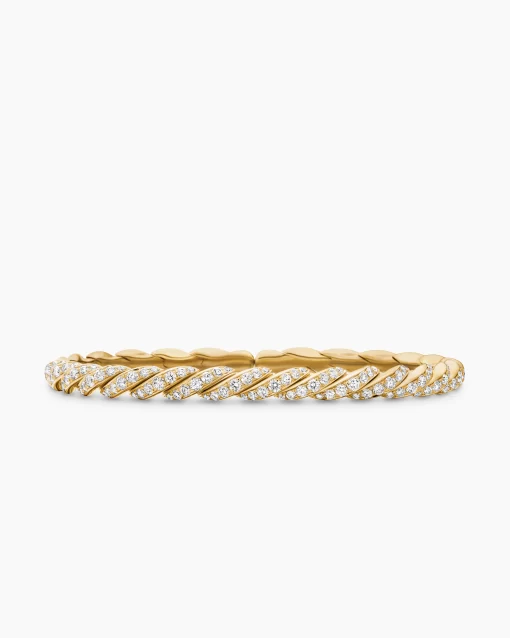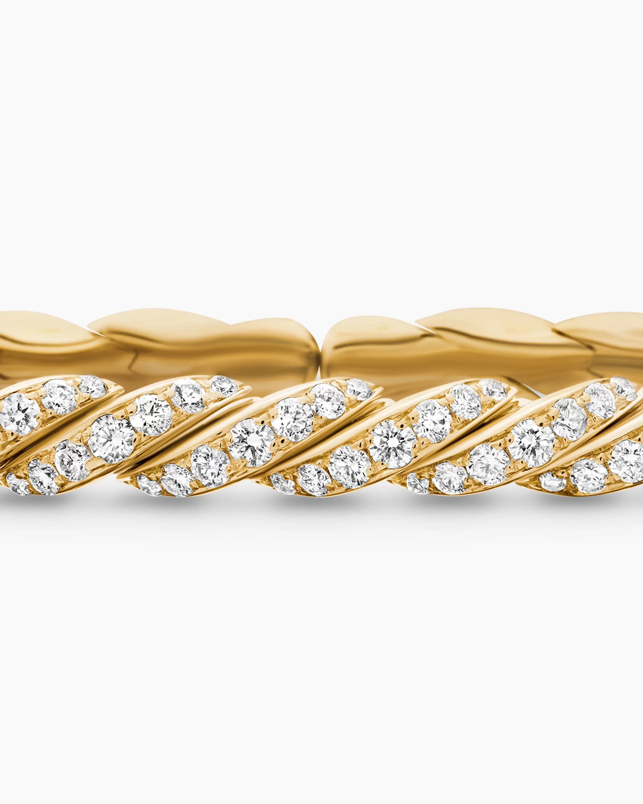 Inspired by his love of architecture and bas-relief sculpture, Evan Yurman designed this modern form by deconstructing Cable—the house’s signature motif—to its essence. Each design is a wearable work of art; precious metals are meticulously carved with exquisite wavelike patterns that dramatically catch the light. Elegant curves highlight the sensuality of the body, with pavé-set diamonds for a statement of added brilliance.18-karat yellow goldPavé-set diamonds, total carat weight ranges from 1.63 to 1.84 (dependent on size)Bracelet, 5mmState-of-the-art flexibility delivers exceptional comfort and ease of wear.