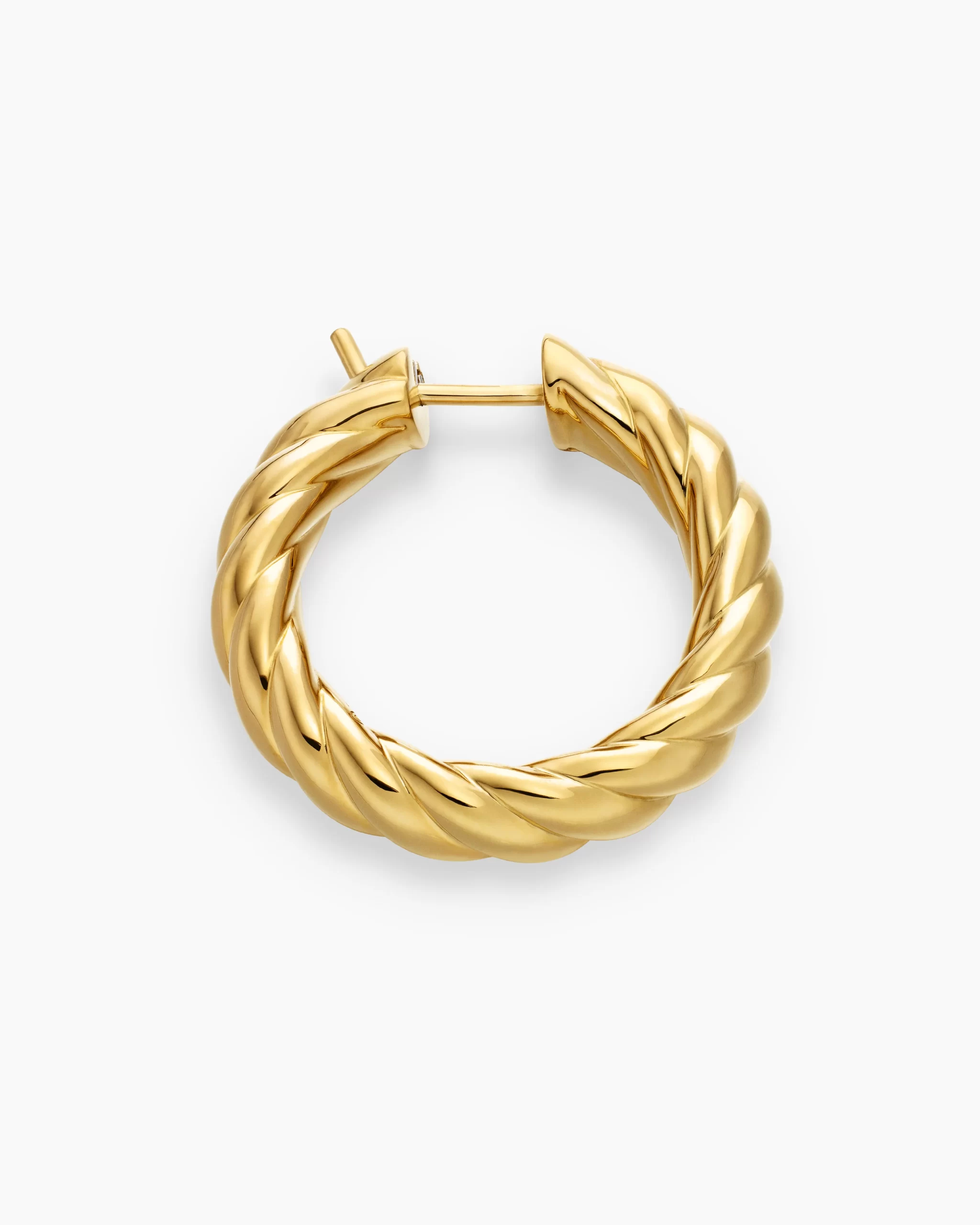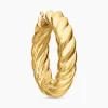 In Sculpted Cable, David Yurman transforms his signature design motif into a carved form. The effect is an entrancing wavelike pattern that retains the dimensional look of Cable’s original helix. 18-karat yellow goldEarrings, 25.4 x 5.4mm