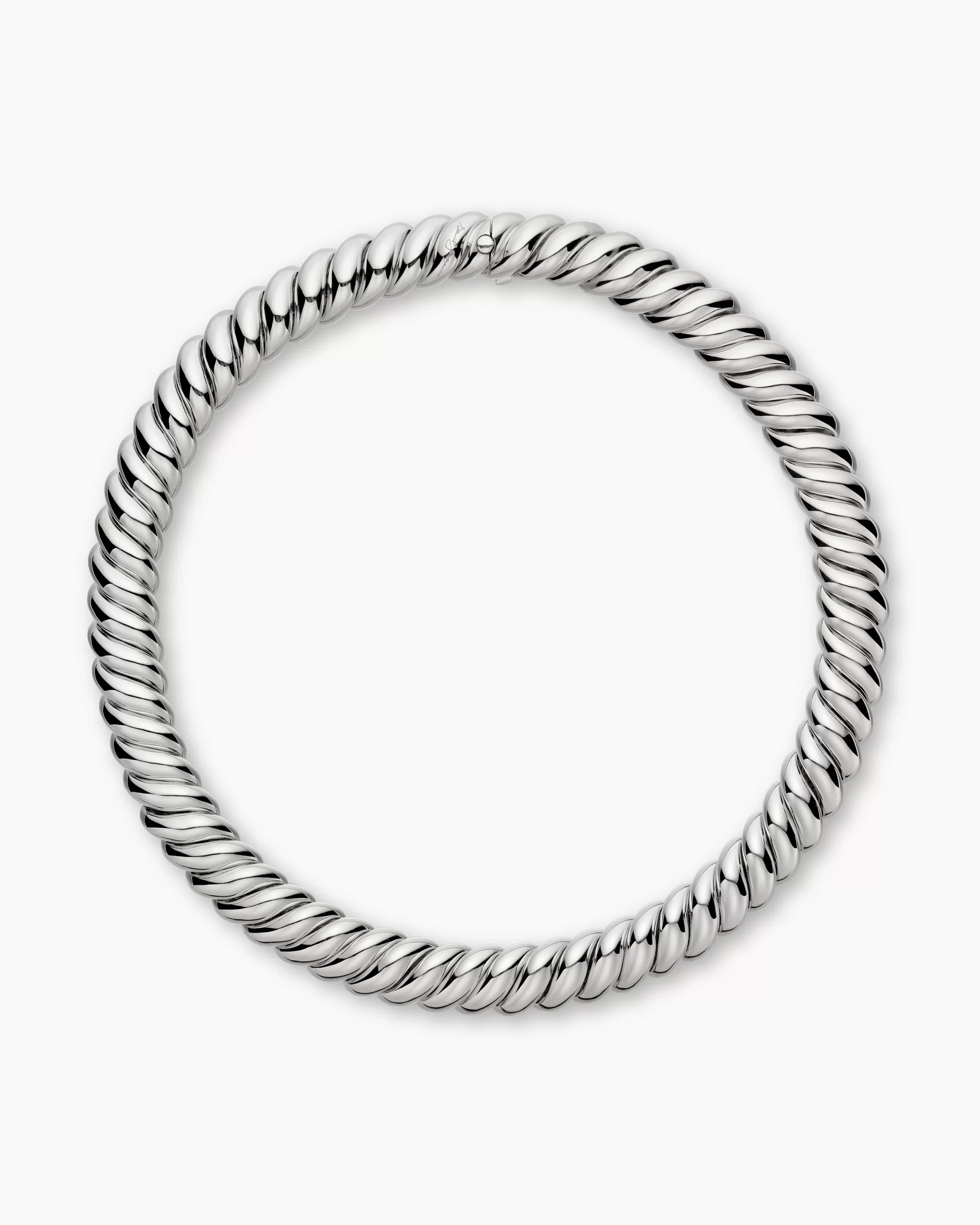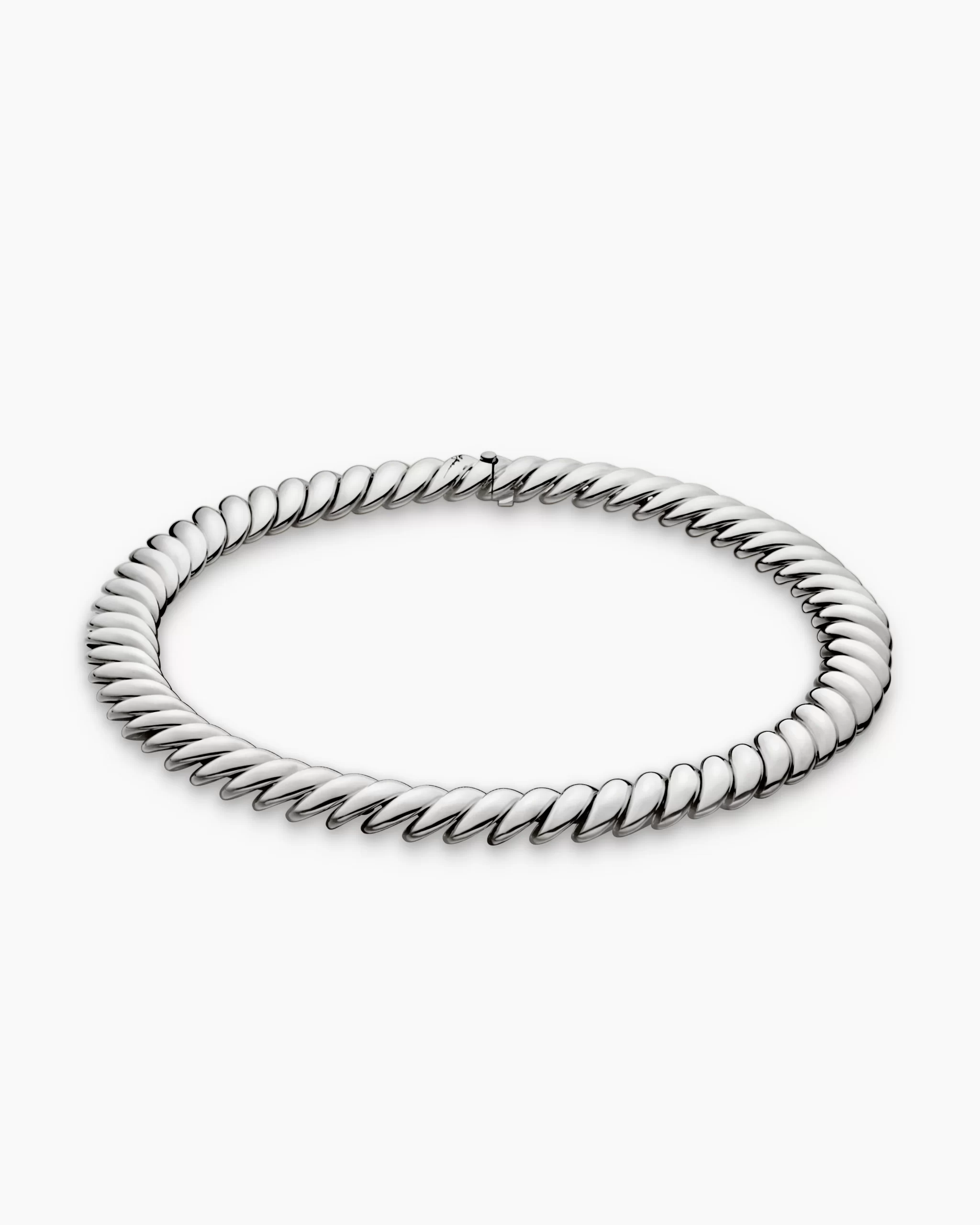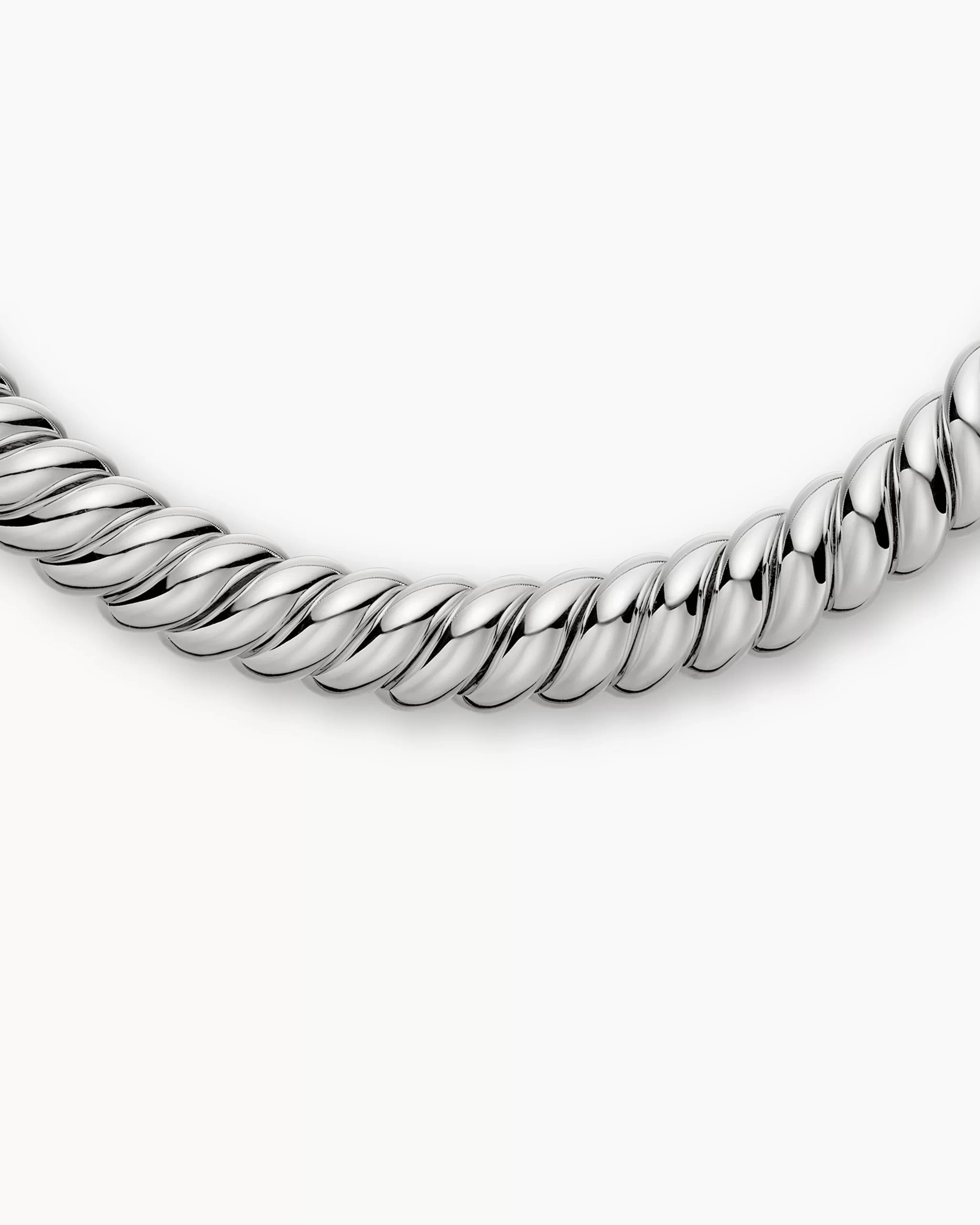 Inspired by his love of architecture and bas-relief sculpture, Evan Yurman designed this modern form by deconstructing Cable—the house’s signature motif—to its essence. Each timeless design is a wearable work of art. Precious metals are meticulously carved with mesmerizing wavelike patterns that dramatically catch the light. Elegant curves highlight the sensuality of the body.Sterling silverNecklace, 14mmBox clasp