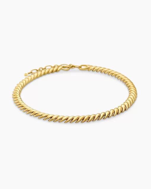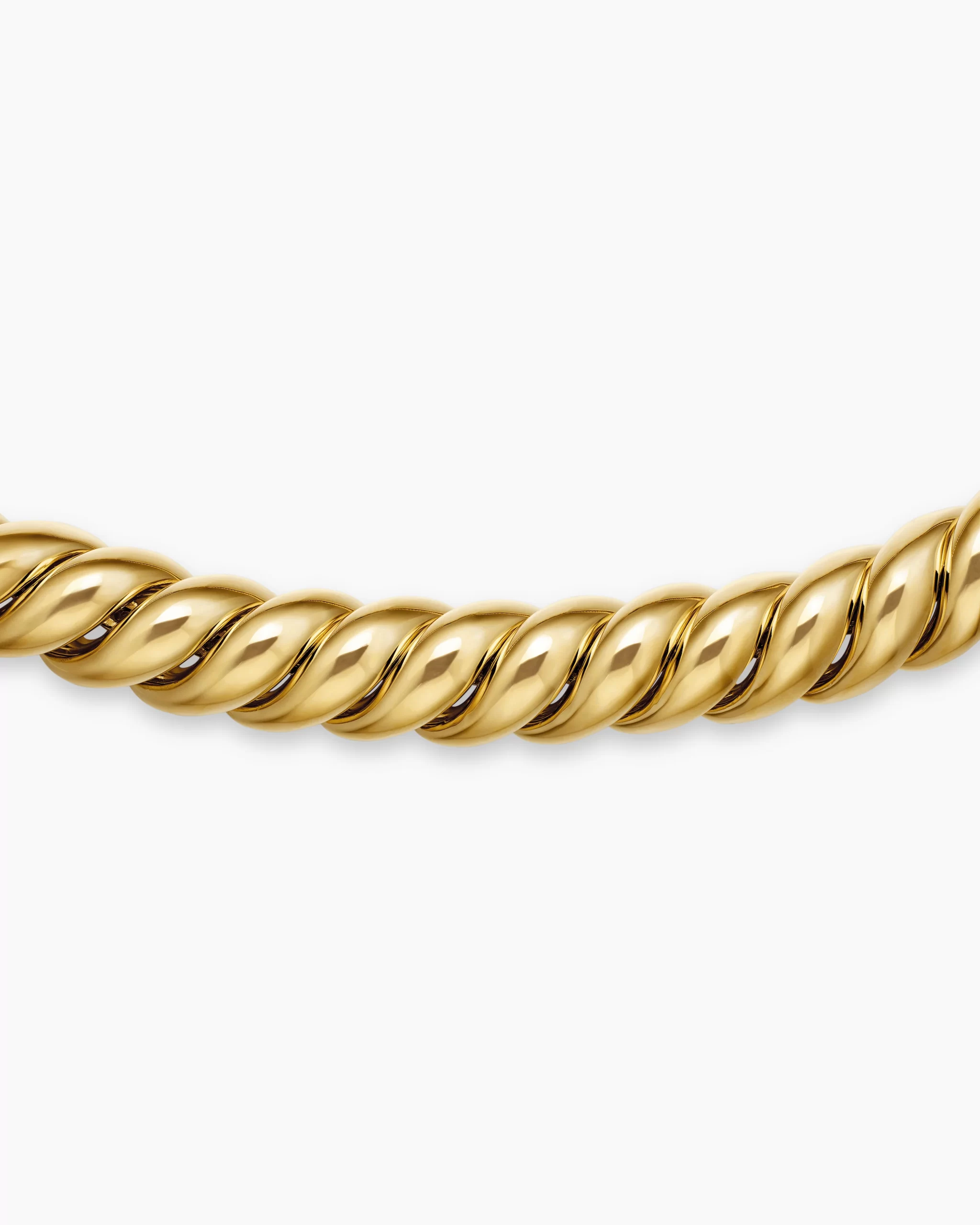 In Sculpted Cable, David Yurman transforms his signature design motif into a carved form. The effect is an entrancing wavelike pattern that retains the dimensional look of Cable’s original helix. 18-karat yellow goldAdjustable length, 16.5-18inNecklace, 8.5mmPush clasp