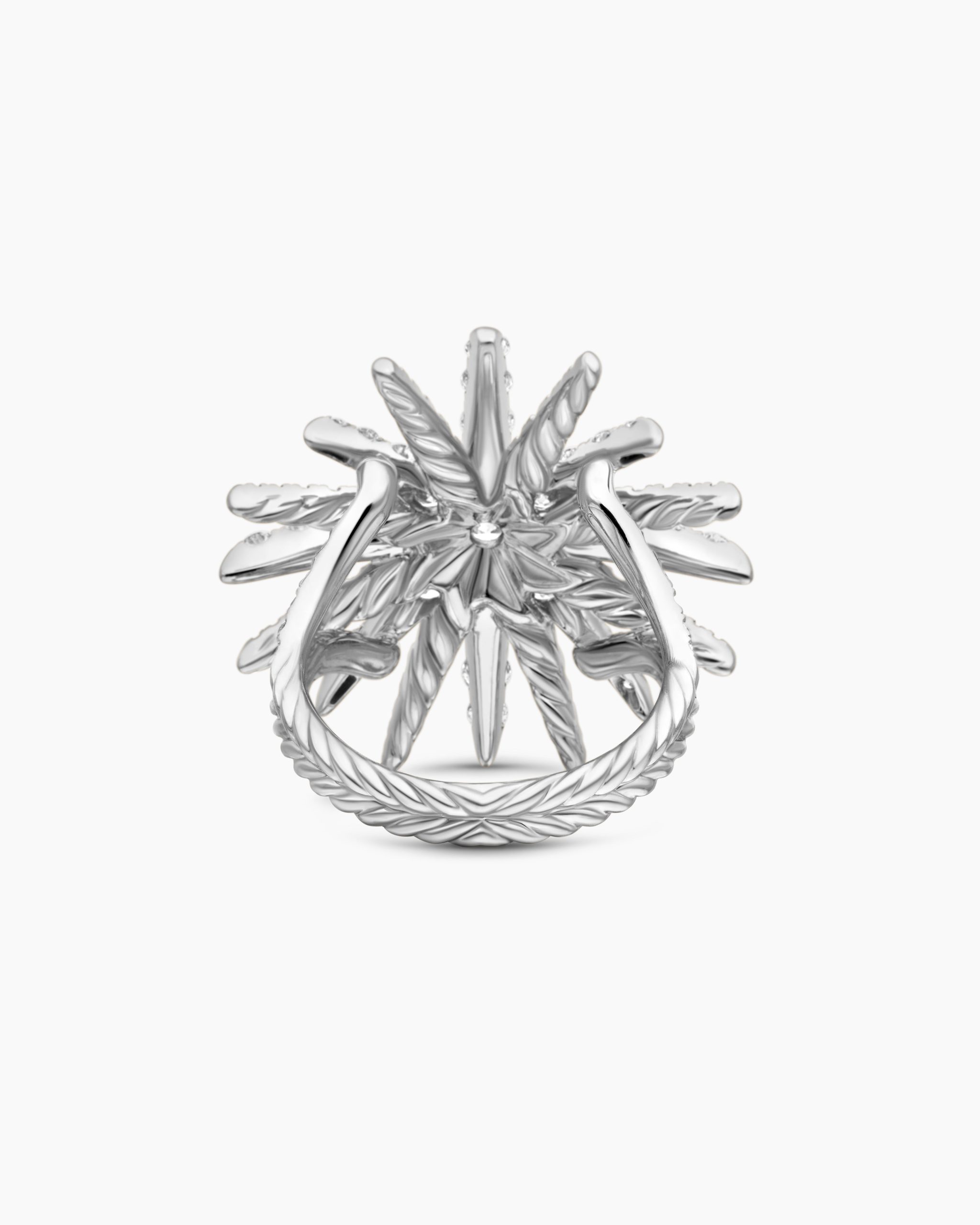 Starburst was born from David and Sybil Yurman’s experience watching fireworks illuminate the Paris night sky. The magical bursts of light greatly moved Sybil, inspiring David to create designs of brilliant star motifs. Sterling silverPavé diamonds, 0.85 total carat weightRing, 28mmThis item can be engraved. Please contact customer care for more information.