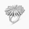 Starburst was born from David and Sybil Yurman’s experience watching fireworks illuminate the Paris night sky. The magical bursts of light greatly moved Sybil, inspiring David to create designs of brilliant star motifs. 18-karat white goldPavé diamonds, 2.75 total carat weightRing, 28mm