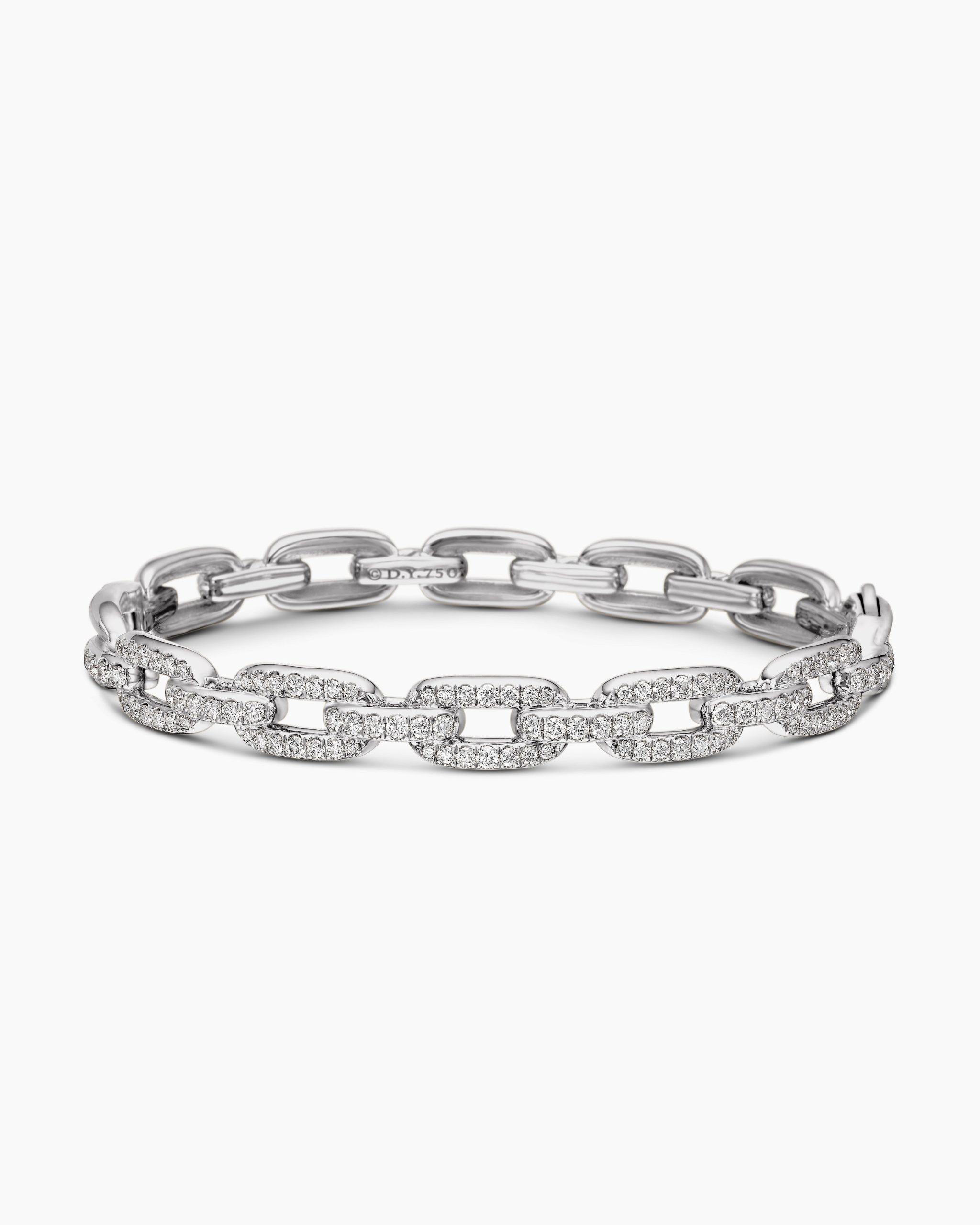 Stax is a contemporary interpretation of elements signature to David Yurman. Combinations of different metal finishes and design motifs define this collection 18-karat white goldPavé diamonds, 1.22 total carat weightBracelet, 7mmPush clasp