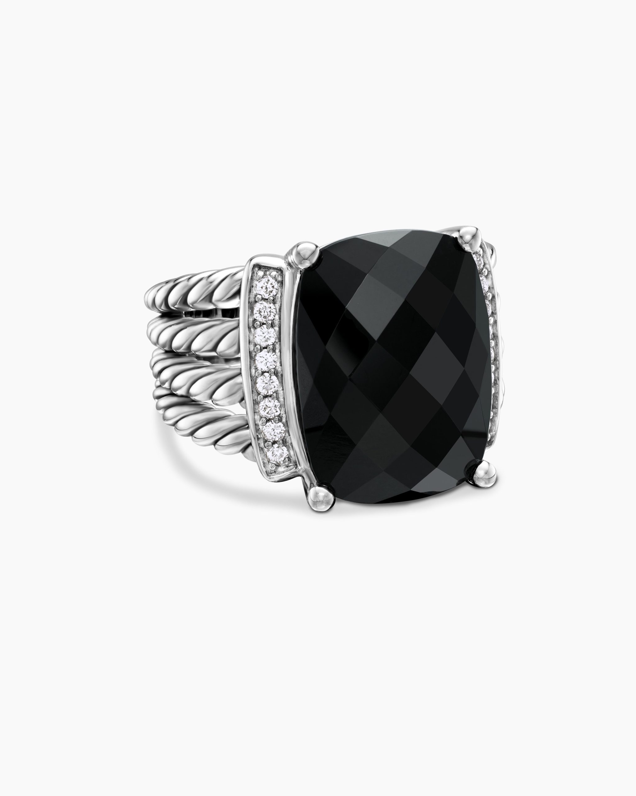 Inspired by the fluid rhythm and graceful line of unharvested wheat, the Wheaton® Collection illuminates slender strands of David Yurman’s signature Cable motif with brilliant pavé diamonds. Sterling silverBlack onyx, 9.31 total carat weightStone, 16 x 12mmPavé diamonds, 0.13 total carat weightRing, 16mmThis item can be engraved. Please contact customer care for more information.