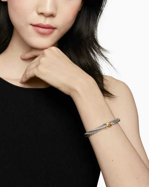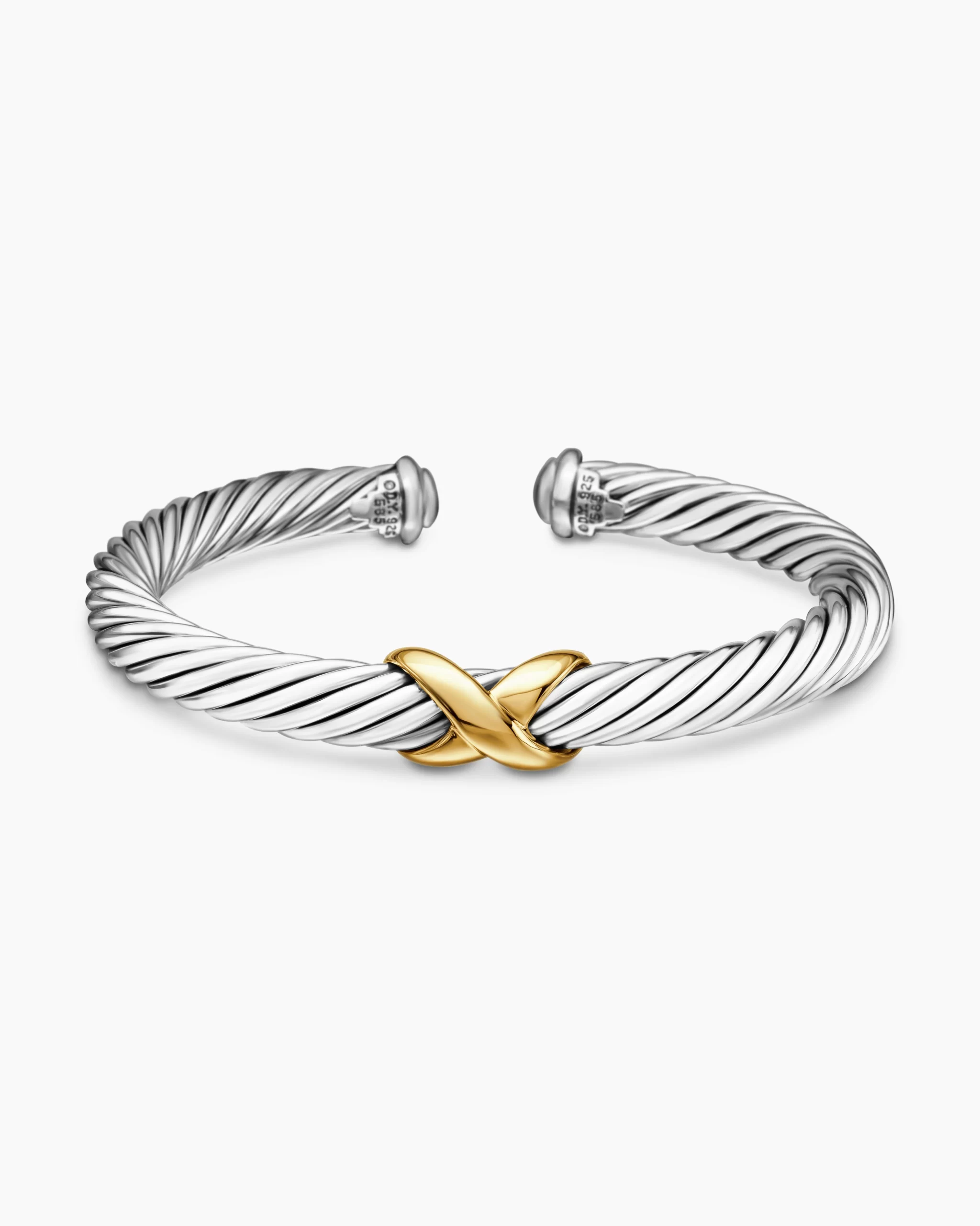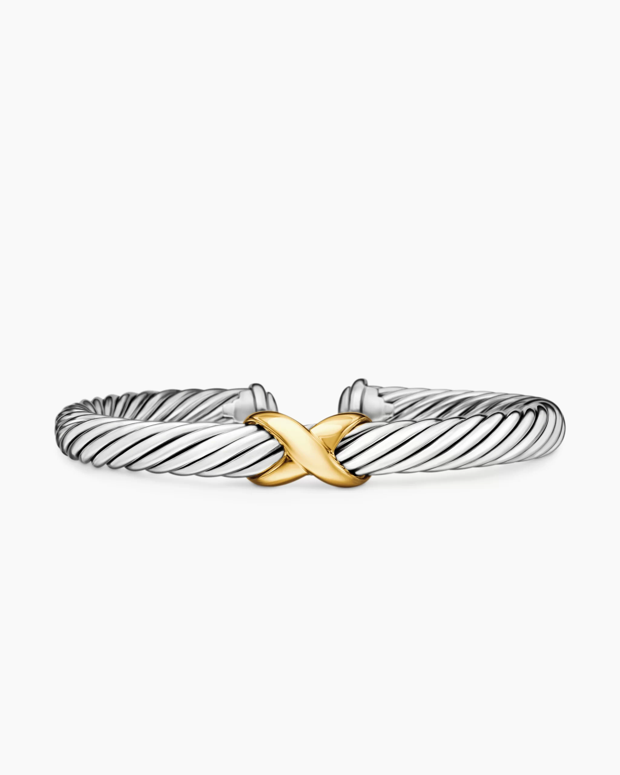 One of David Yurman’s most iconic designs, the X Collection was inspired by his wife Sybil’s painting of the ancient mark. Classic yet contemporary, the collection epitomizes his approach to design. Sterling silver and 14-karat yellow goldBracelet, 7mm